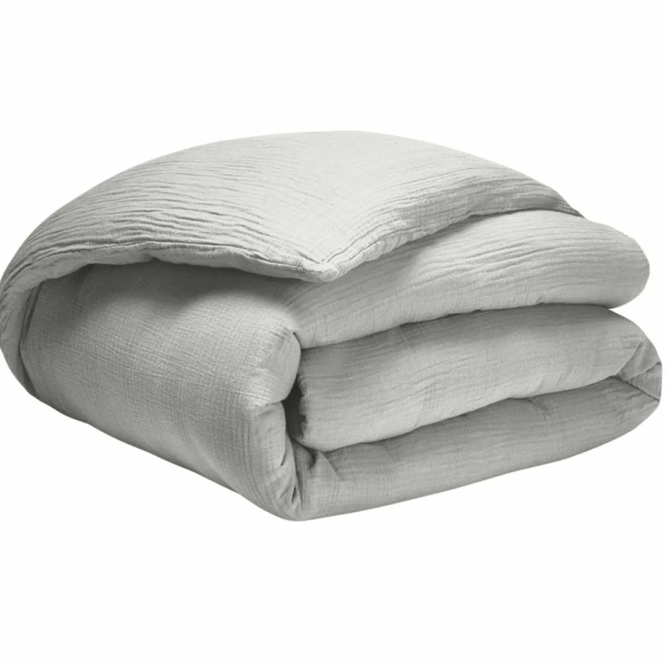 En 100 % double gaze de coton, matière qui ne pourra que gagner en souplesse et en douceur au fil des lavages