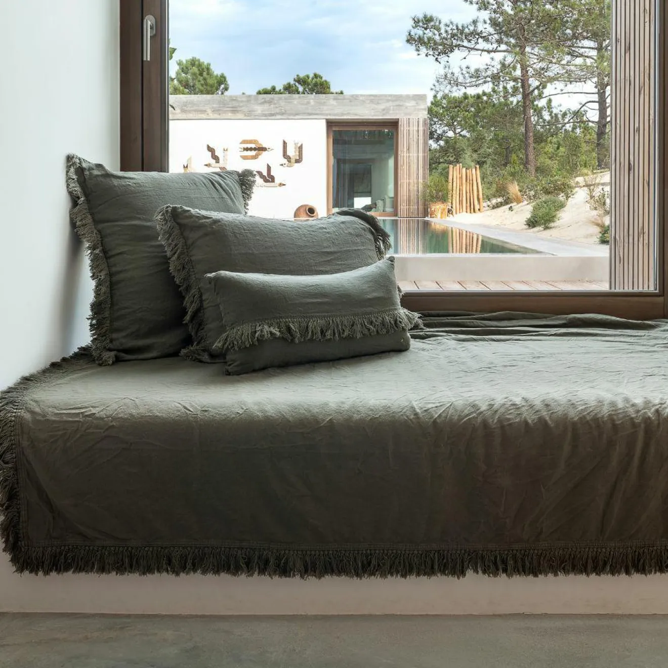 Le coussin FOX Frangé, coloris Kaki, est l’ajout parfait pour une décoration à la fois chaleureuse et élégante. Sa housse en 100 % lin lavé assure une douceur agréable au toucher, tout en offrant une texture naturelle et résistante. Les finitions frangées et la croix brodée à l’angle apportent des détails subtils et raffinés, tandis que la fermeture à zip garantit une utilisation facile. Avec ses dimensions de 30 x 60 cm, il s’intègre aisément dans n’importe quel espace de votre intérieur. Fabriqué au Portugal avec soin, ce coussin est vendu avec sa garniture, pour un confort immédiat et un style intemporel.
