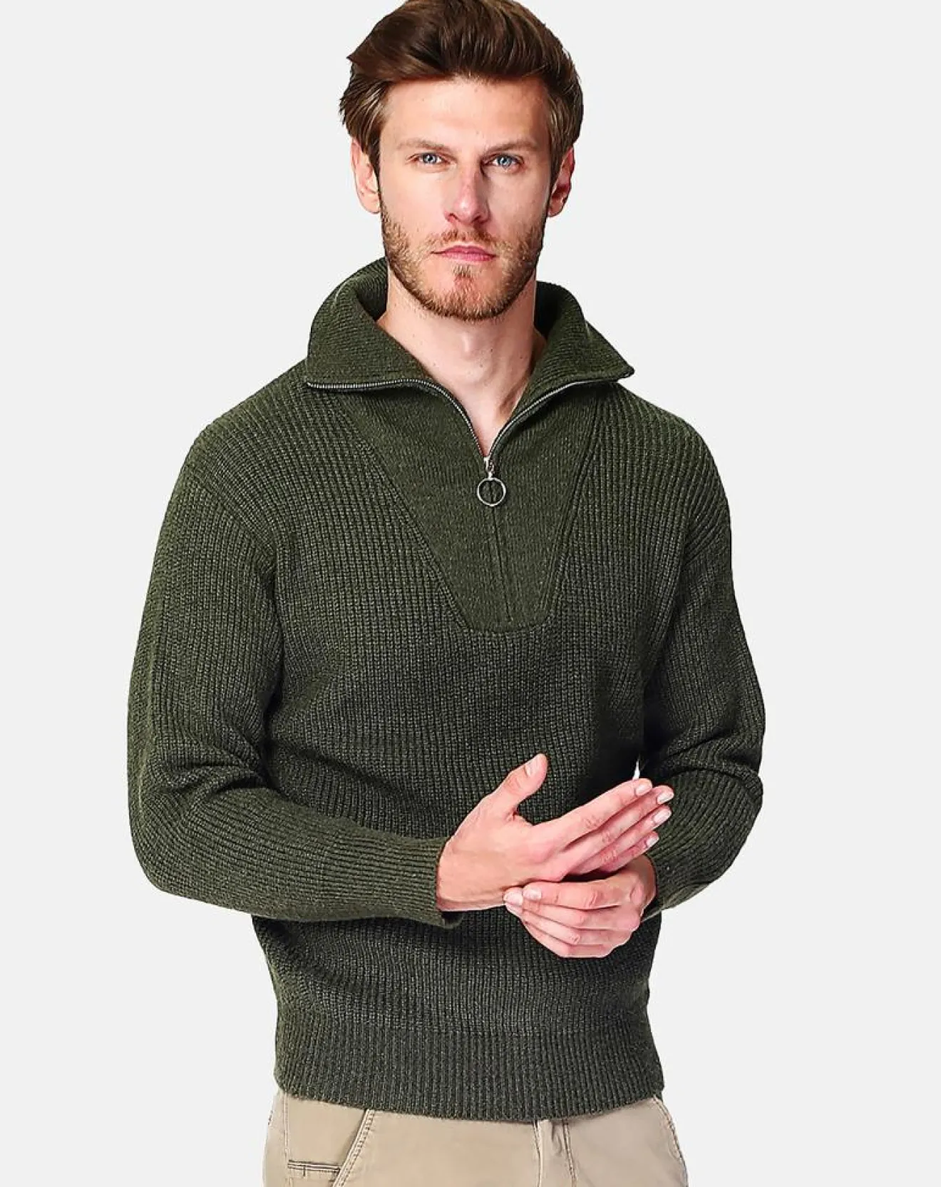 Pull col camionneur zippé tricotage fantaisie à manches longues