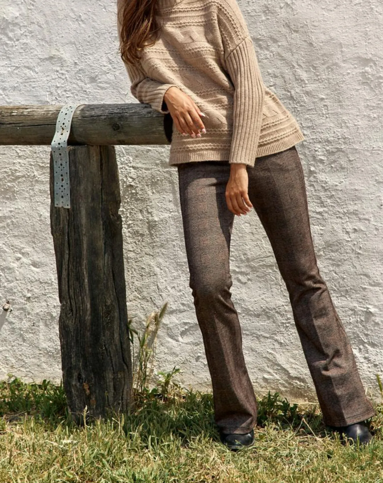 Pull torsadé en cachemire laine au col montant et manches tombantes tricotées en torsades horizontales