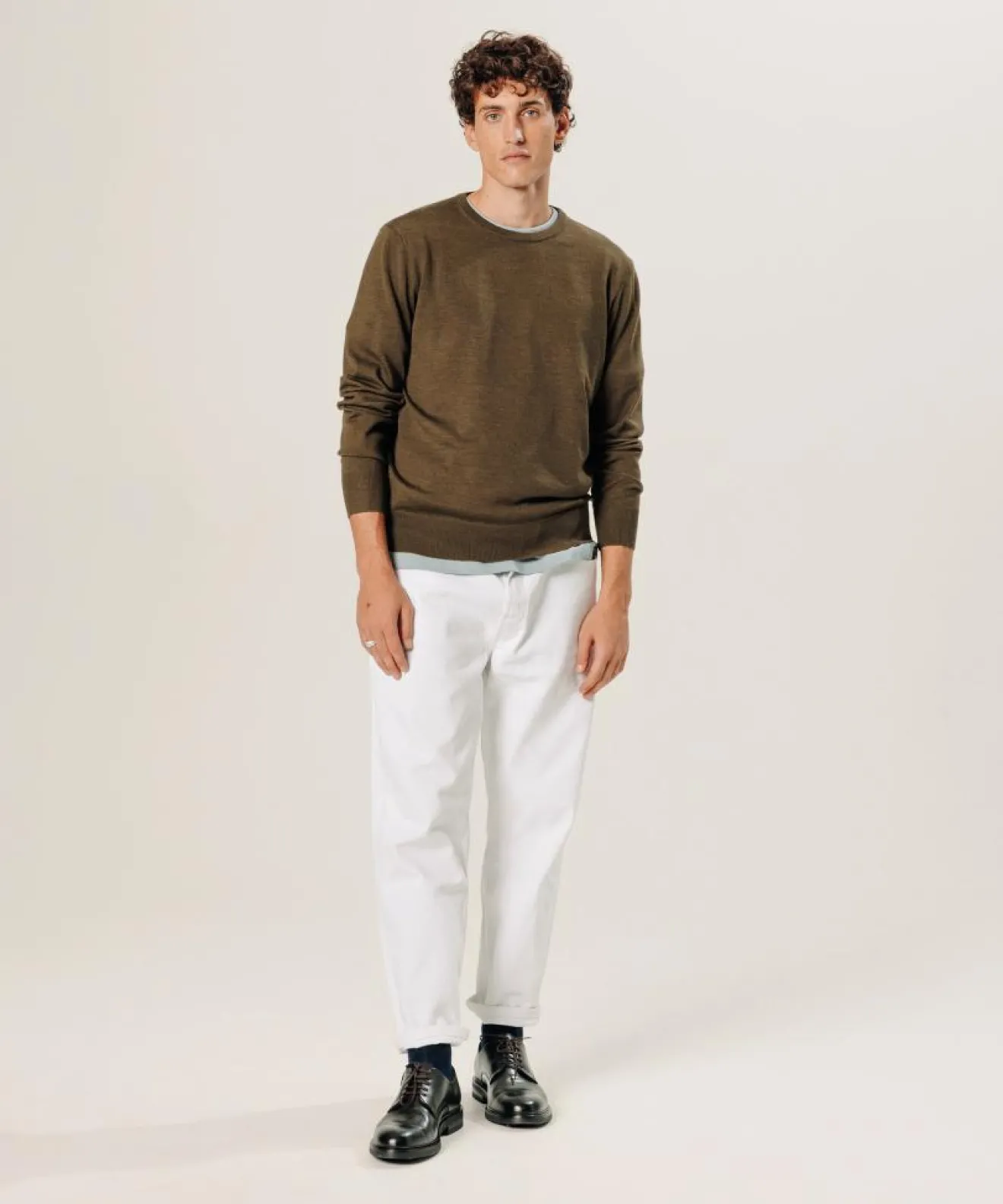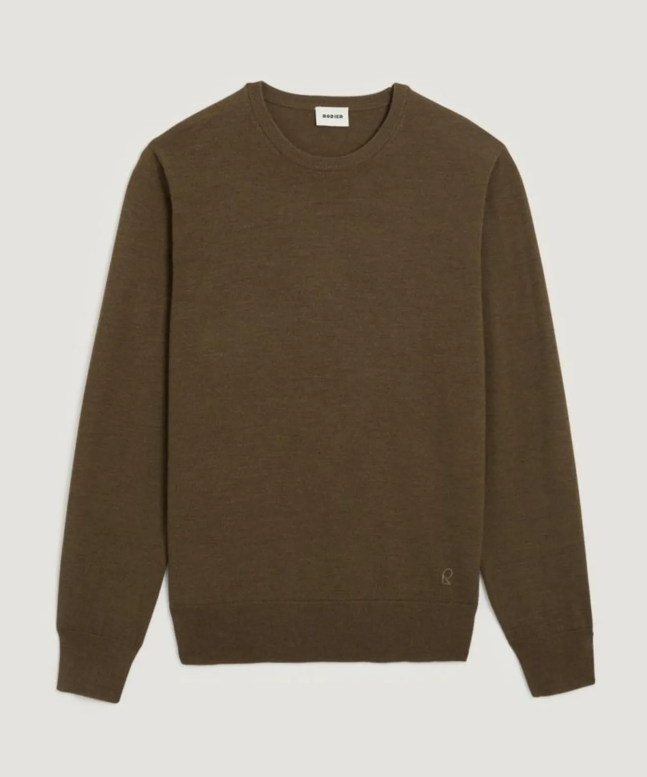 Best Rodier Pull Aaron 100% laine col rond marron écorce