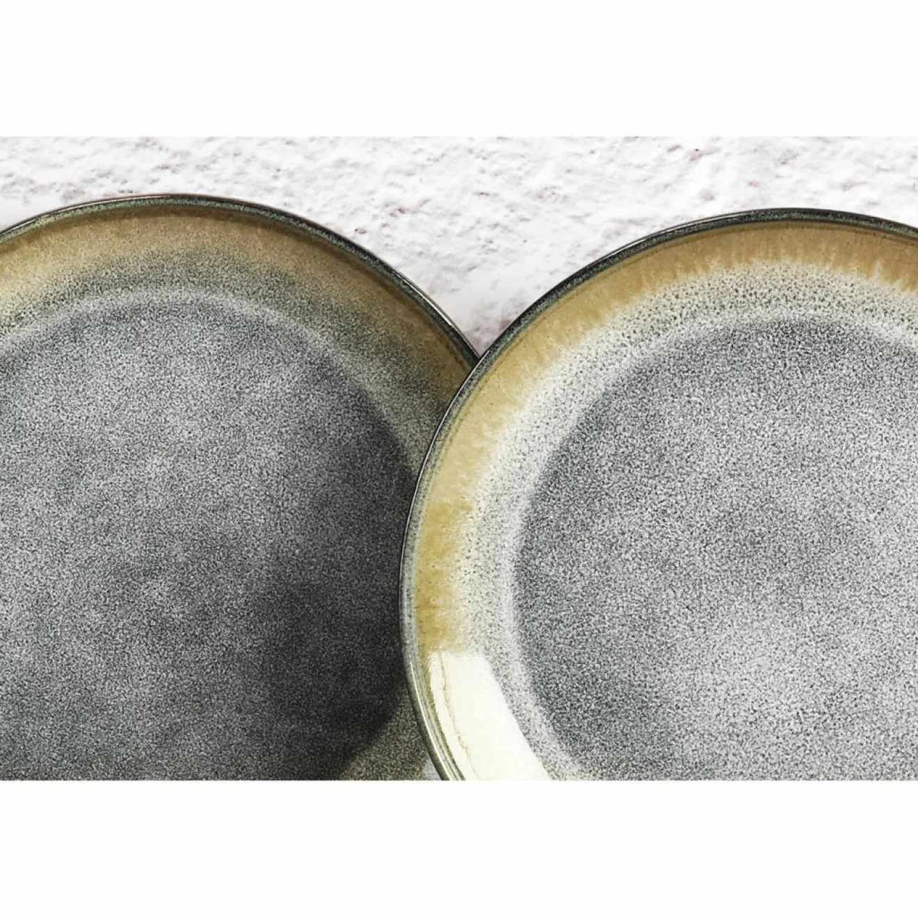 Cette assiette au caractère naturel présente des effets réactifs et formes asymétriques qui rendent chaque pièce unique