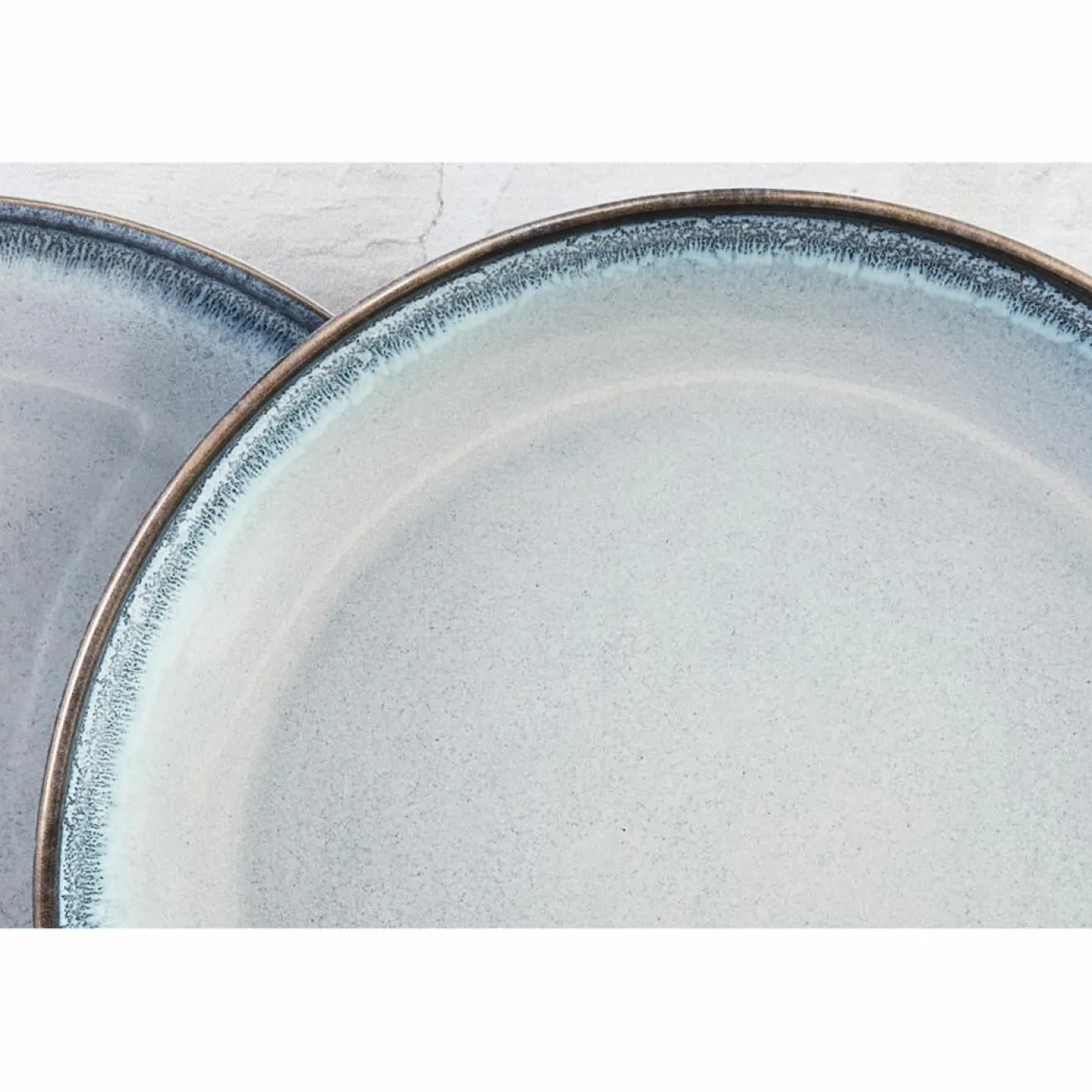 Cette assiette au caractère naturel présente des effets réactifs et formes asymétriques qui rendent chaque pièce unique
