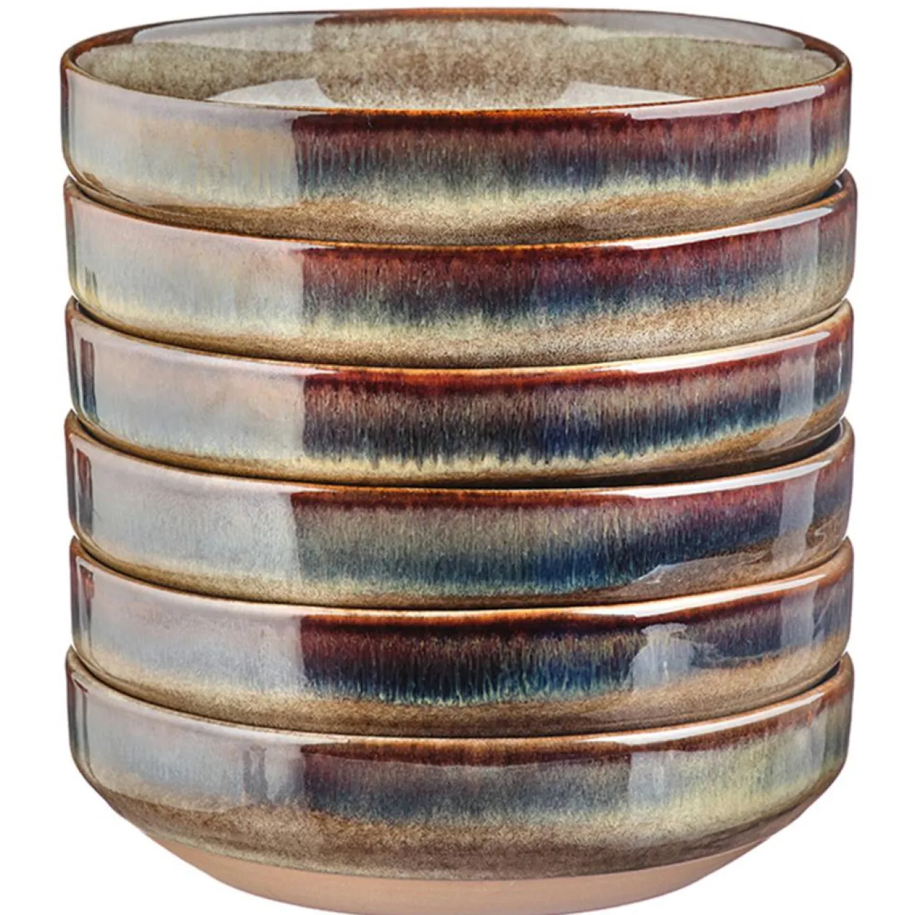 Après une première cuisson de l’argile à basse température, des émaux réactifs de couleurs différentes s’appliquent sur le grès et lui donnent un relief unique et éclatant. L’apparition de nuances de teintes que l’on retrouve d’une pièce à l’autre est le résultat d’un savant mélange artisanal des techniques de cuisson et du mode d’application de l’émail.