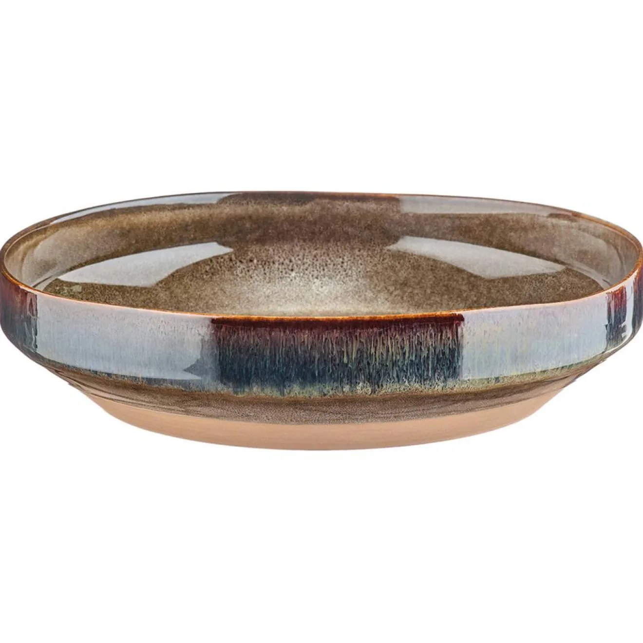 Après une première cuisson de l’argile à basse température, des émaux réactifs de couleurs différentes s’appliquent sur le grès et lui donnent un relief unique et éclatant. L’apparition de nuances de teintes que l’on retrouve d’une pièce à l’autre est le résultat d’un savant mélange artisanal des techniques de cuisson et du mode d’application de l’émail.