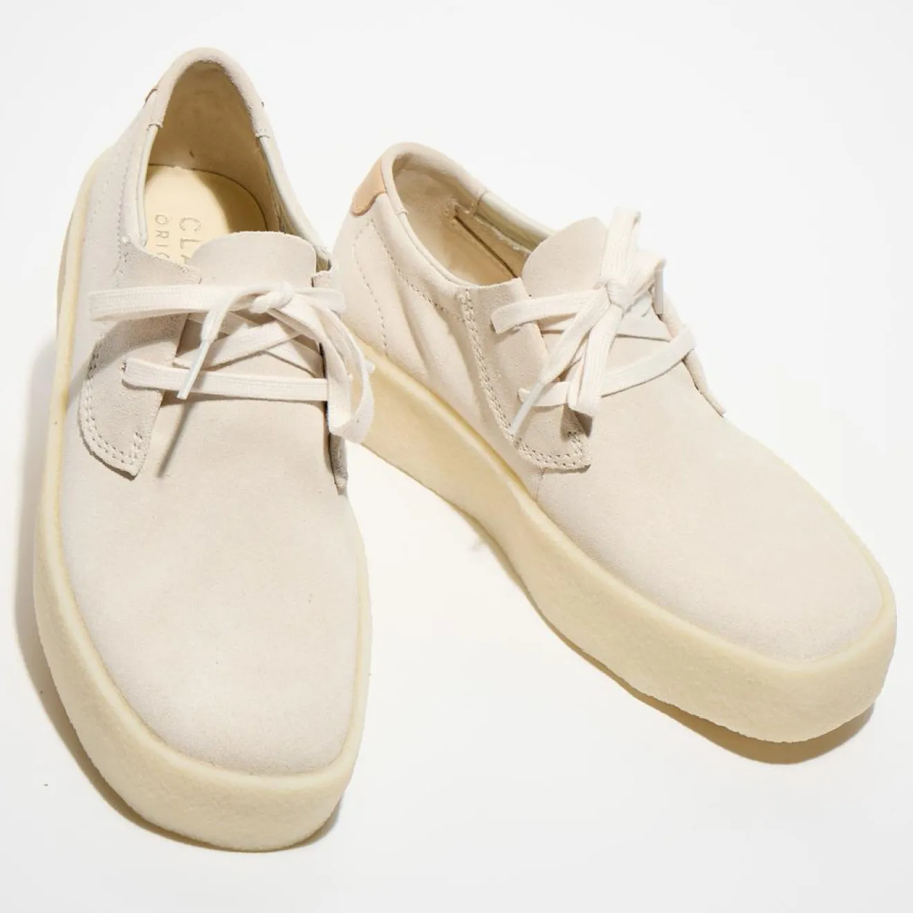 Ashcott Cup de Clarks Original, une chaussure décontractée au look minimaliste avec une tige en daim et une semelle enveloppée en crêpe de caoutchouc naturel « certifiée FSC »