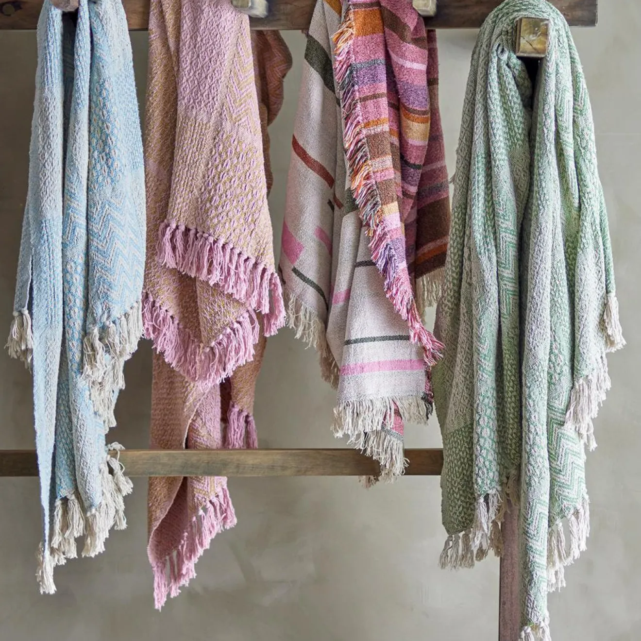 Le Plaid Toscana de Bloomingville est fabriqué en coton recyclé et est tissé dans un magnifique motif graphique aux nuances fines et variées. Les bords frangés décoratifs ajoutent une touche douce et cozy à n’importe quelle pièce. Le plaid est idéal pour le canapé, le fauteuil, la chambre et la chambre d’enfant, et peut avantageusement être mixé et assorti avec des coussins de différentes nuances et tissus.