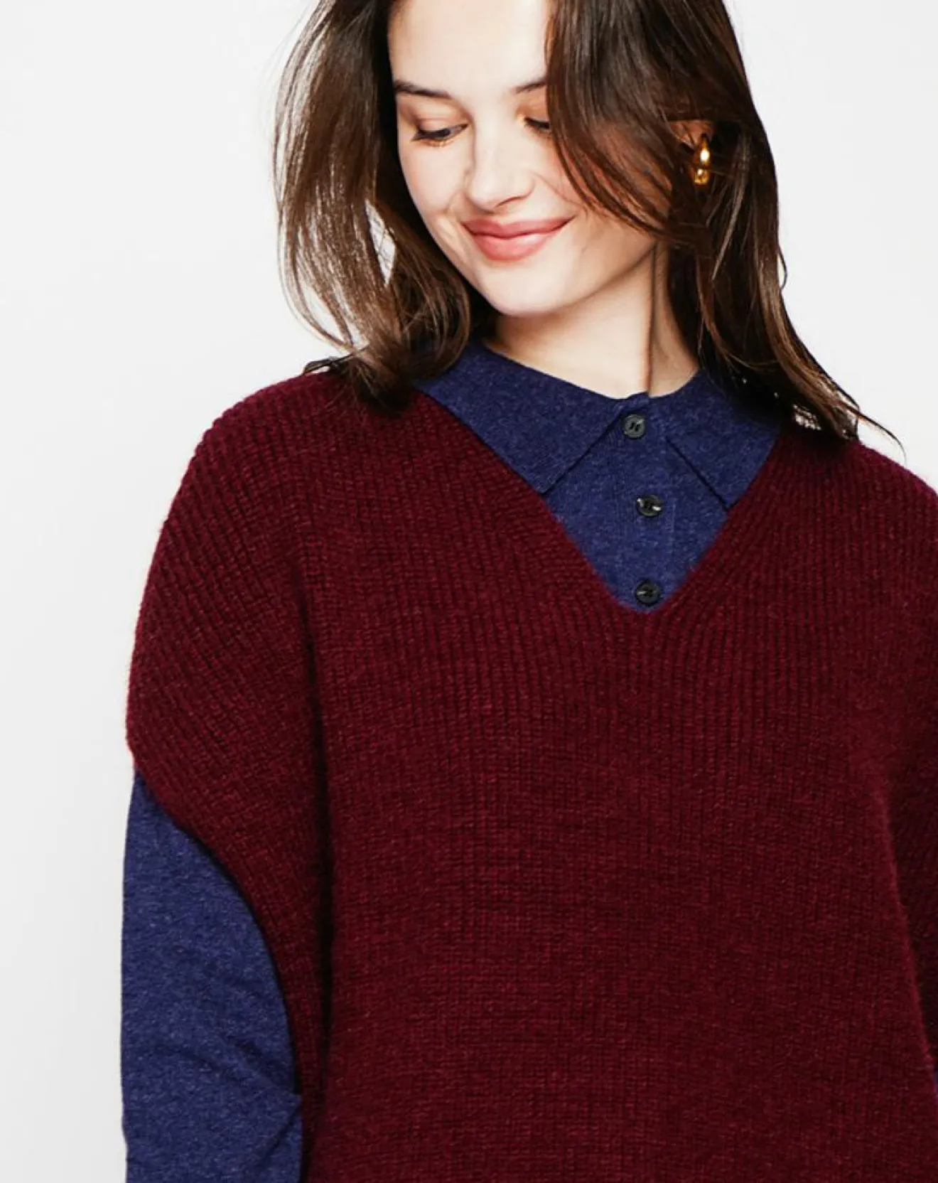 Pull poncho col V tricotage fantaisie coupe oversize