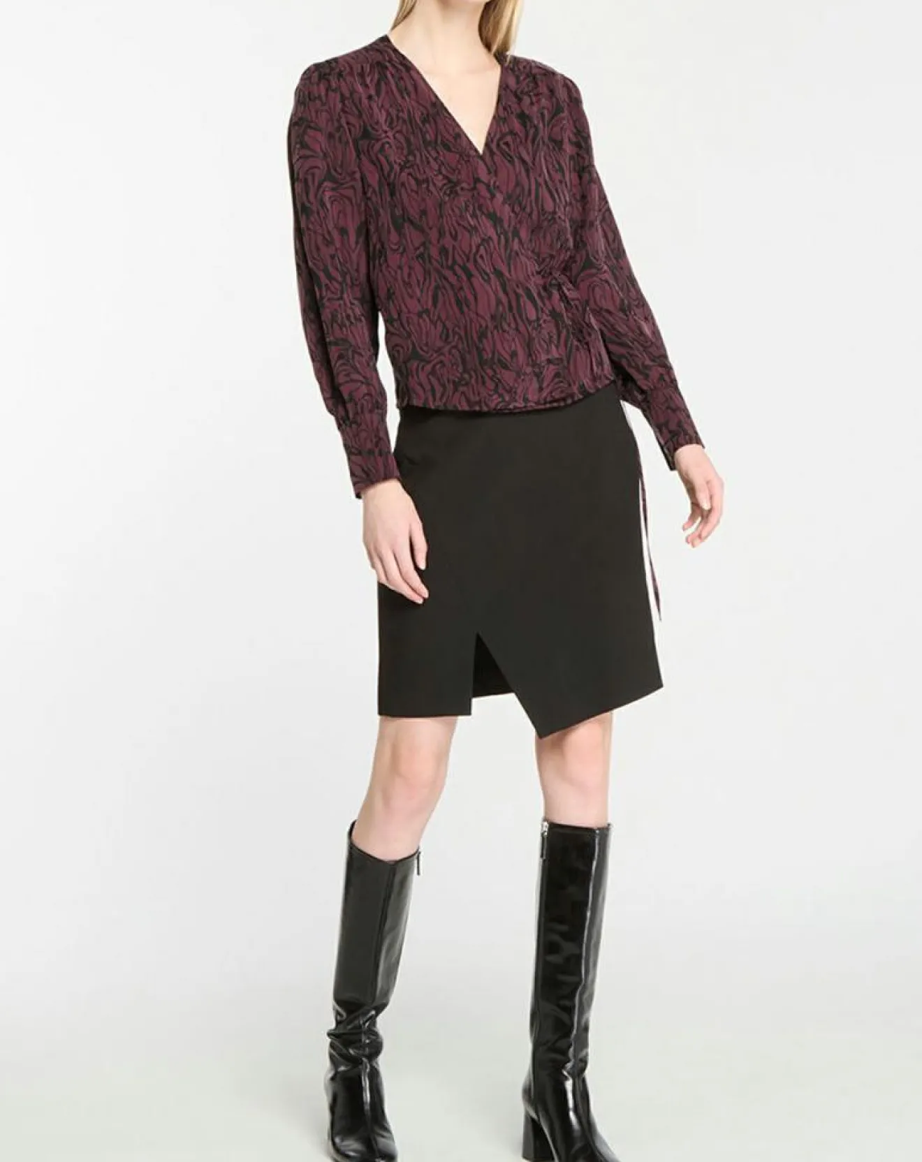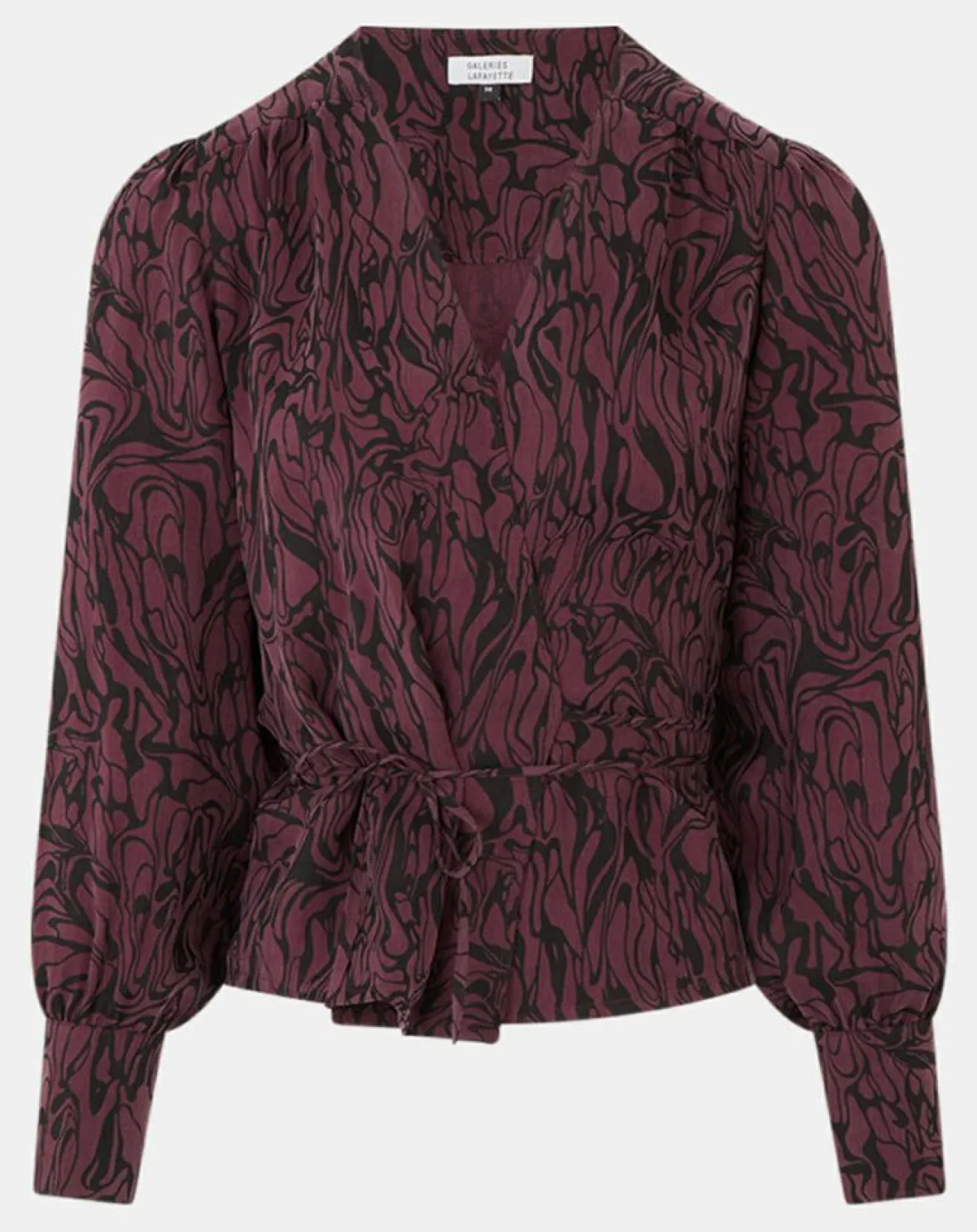 Ce top cache coeur Galeries Lafayette est muni d’un imprimé fantaisie, de manches longues légèrement bouffantes aux poignets larges boutonnés et d’une taille à nouer.