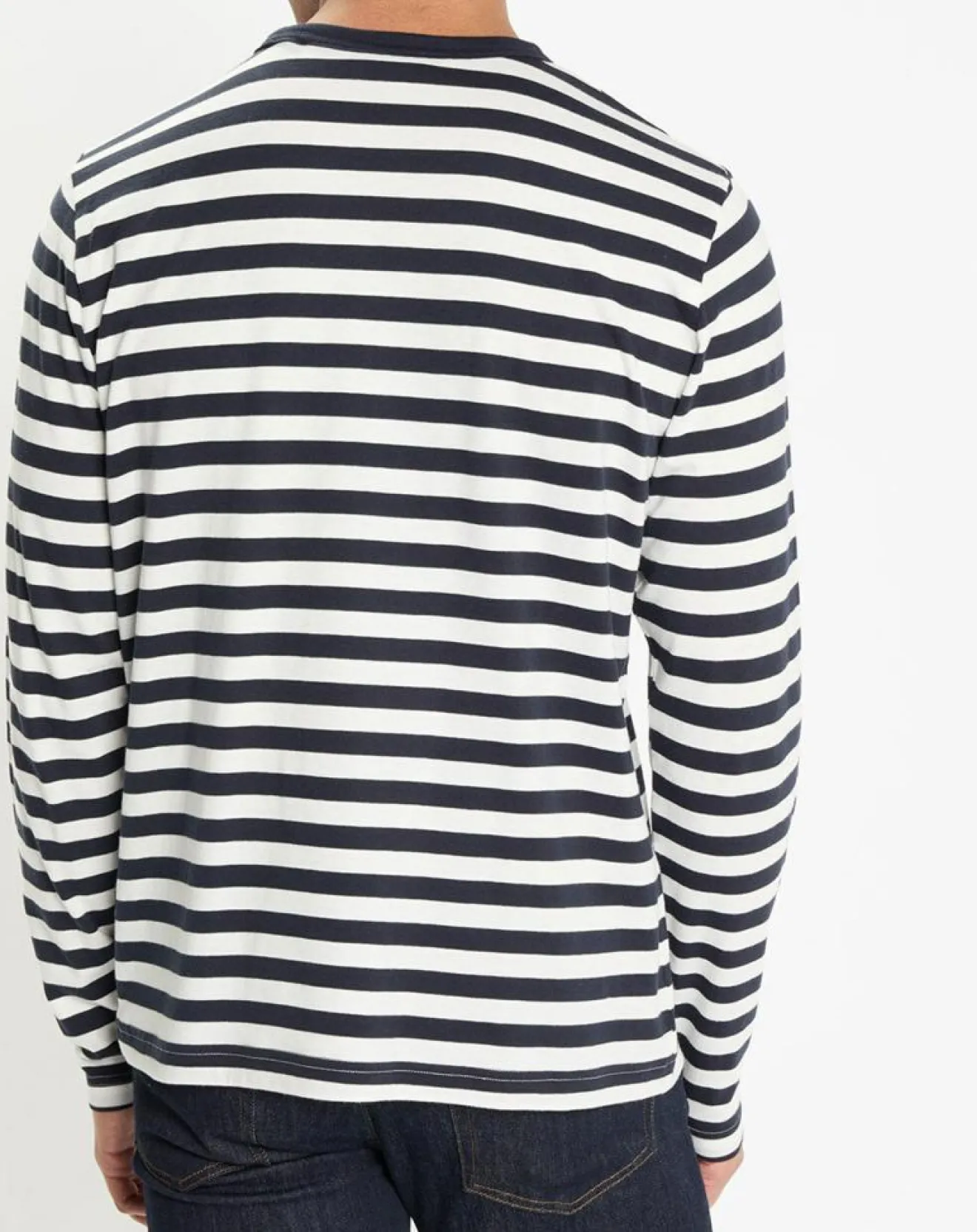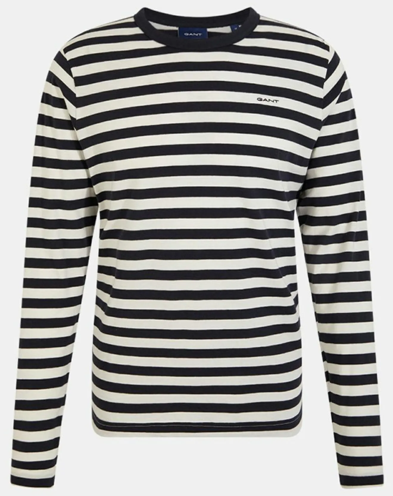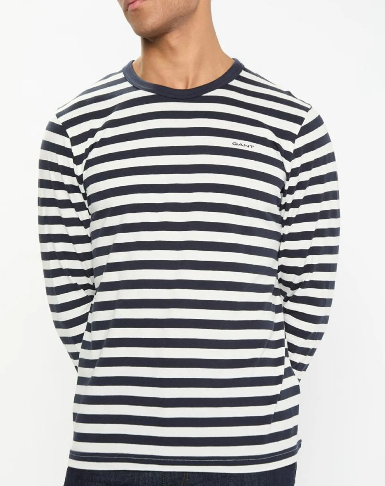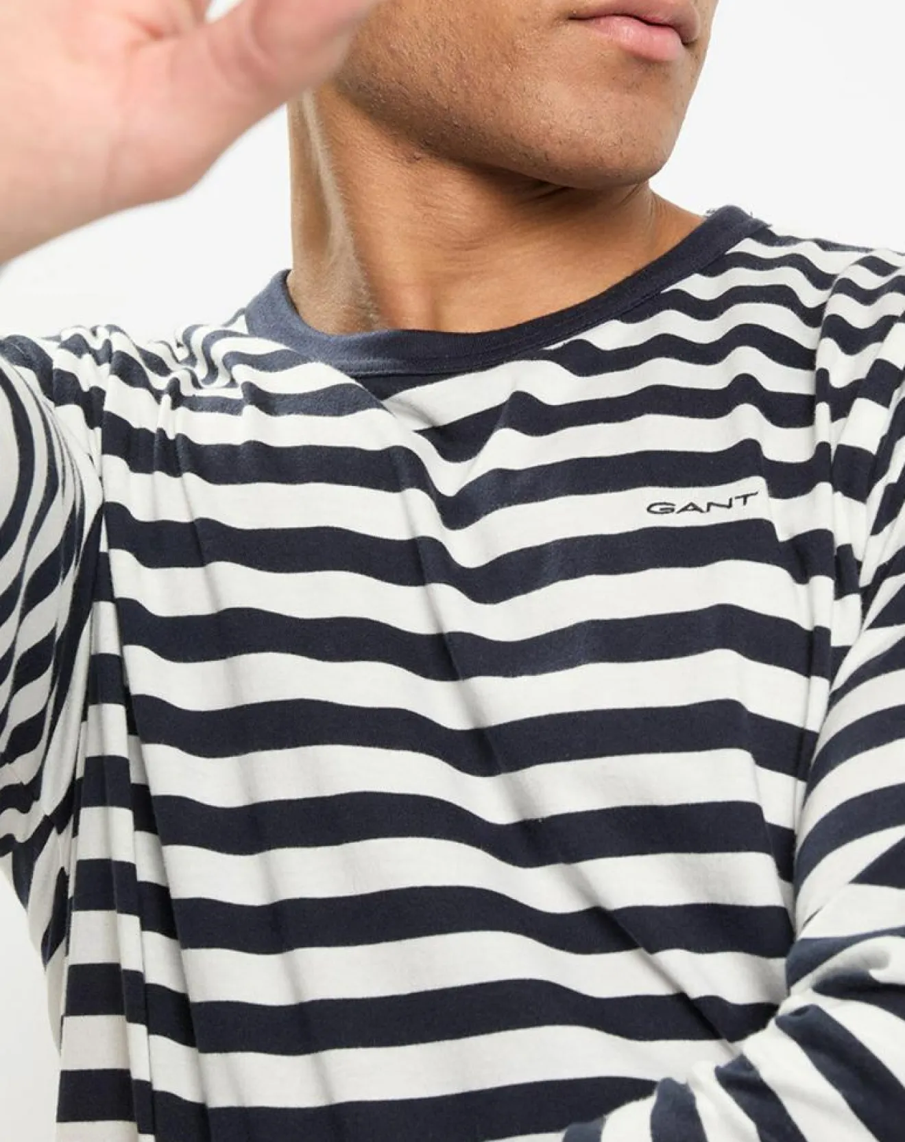 Ce t-shirt droit Gant en coton est muni de rayures, d’un col rond, de la signature brodée sur le côté gauche de la poitrine ainsi que de manches longues
