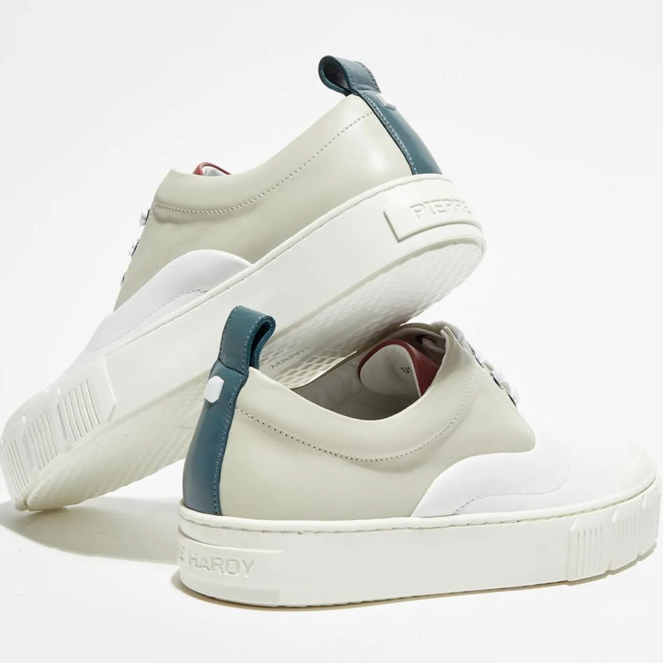 Ces baskets basses Pierre Hardy en cuir de vachette lisse, présentent un bout rond renforcé, un laçage à 4 oeillets, un tirant d’enfilage contrastant et la griffe embossée en ton sur ton à l’arrière.