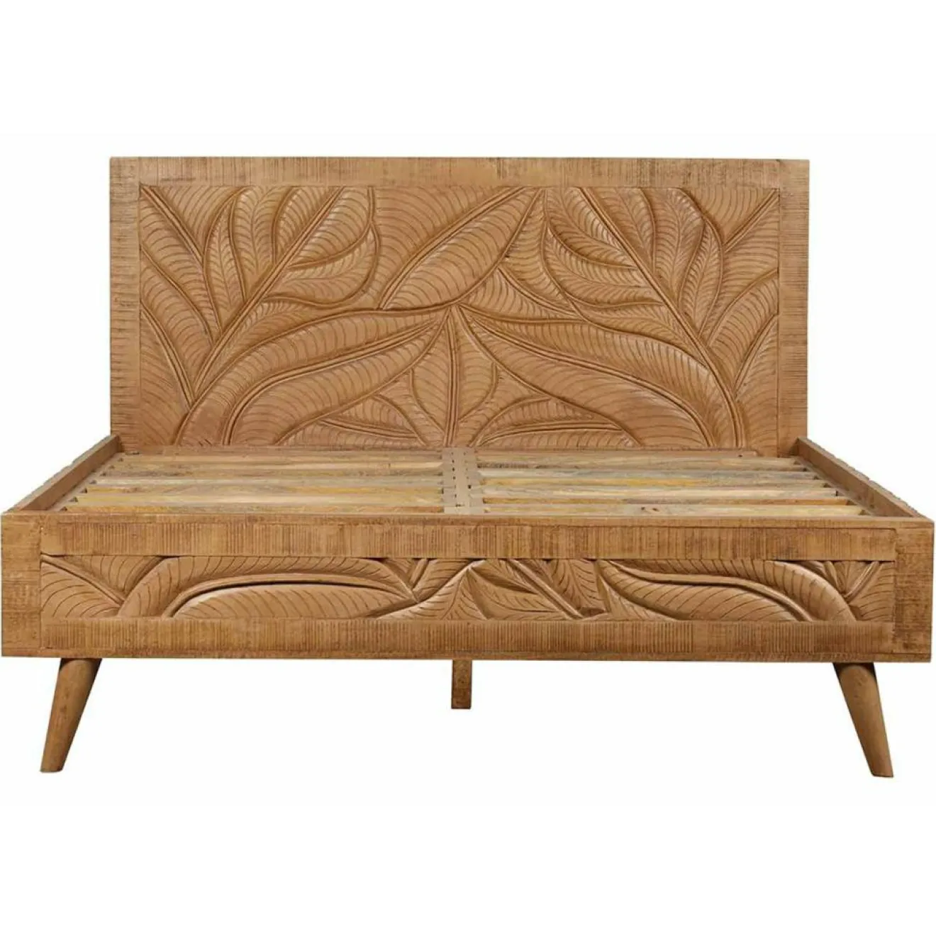 Sculpté à la main avec des motifs végétaux uniques, ce lit devient une uvre d’art en soi, apportant une dimension artistique et une connexion avec la nature à votre chambre à coucher