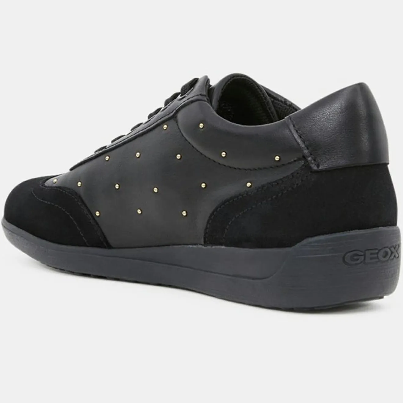 Ces baskets basses Geox confectionnées en cuir de vachette et suède, présentent des studs dorés décoratifs, 6 &oeligillets de laçage, une semelle intérieure respirante en cuir ainsi qu’une semelle extérieure en caoutchouc semi-perforé.