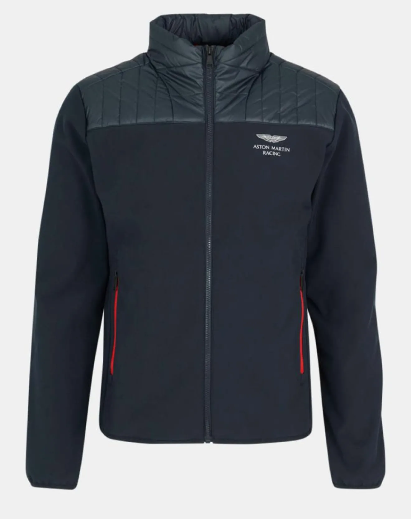 Il est muni d’un col montant, de manches longues, d’une fermeture à glissière, de 2 poches latérales zippées sur l’avant et d’une application Aston Martin Racing avec logo sur le côté gauche de la poitrine