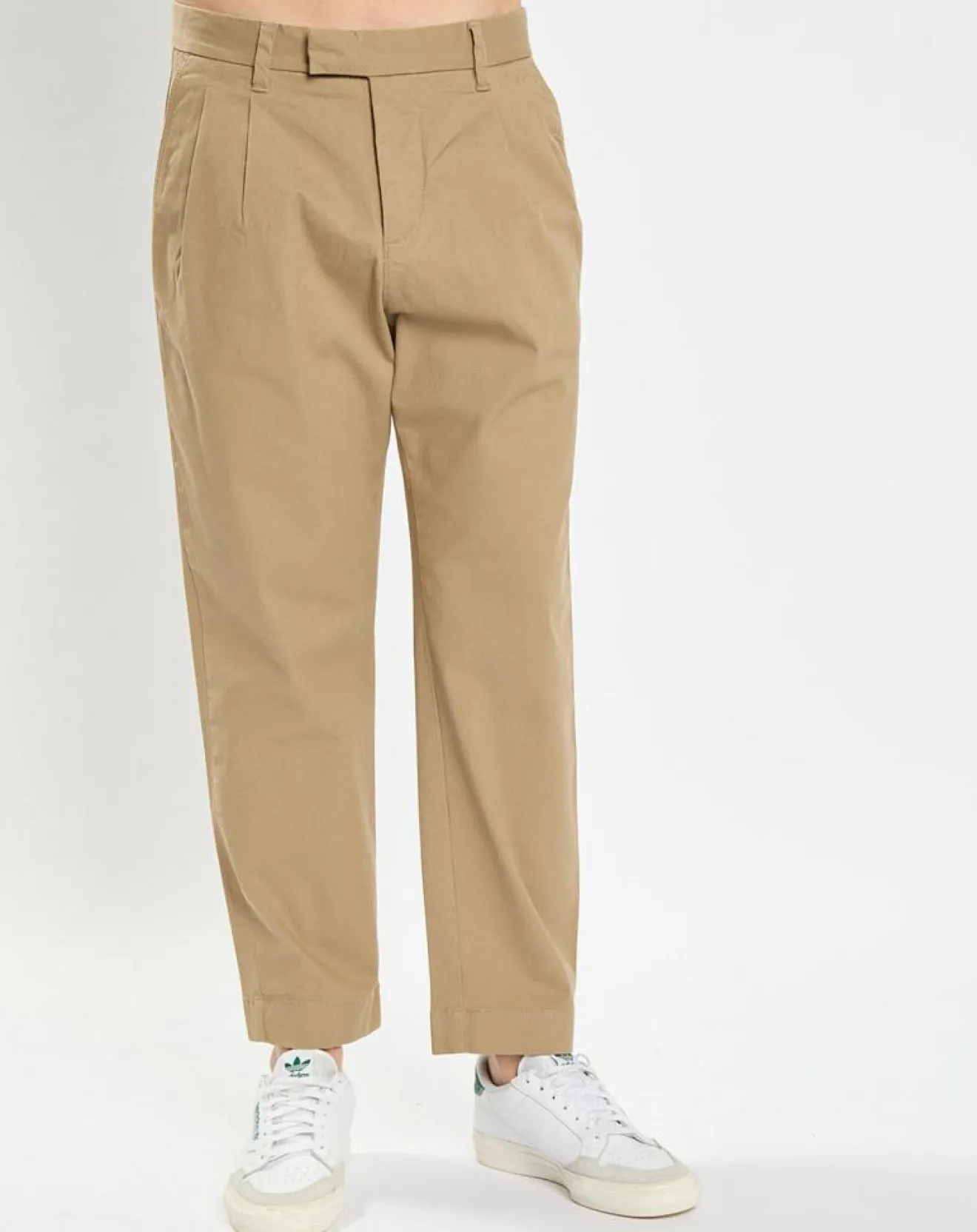 Désormais doté de pinces à la taille : le pantalon moderne – modèle BELSBO pleats – dans un mélange de coton biologique extensible de qualité supérieure.