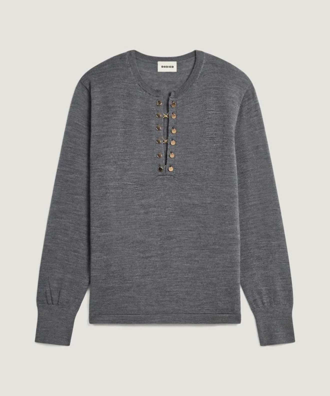 Discount Rodier Pull Adija 100% Laine chaine col V gris foncé