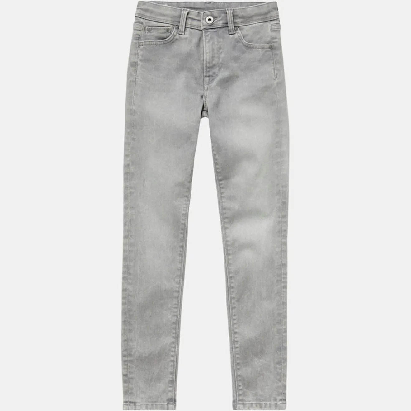 Ce jean stretch et skinny Pepe Jeans composé de coton gris présente des passants pour ceinture, des poches cavalières et ticket à l’avant et des poches plaquées au dos.