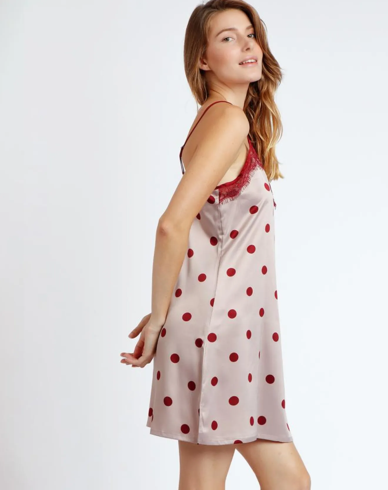 Chemise de nuit Elegant Dots rouge bordeaux