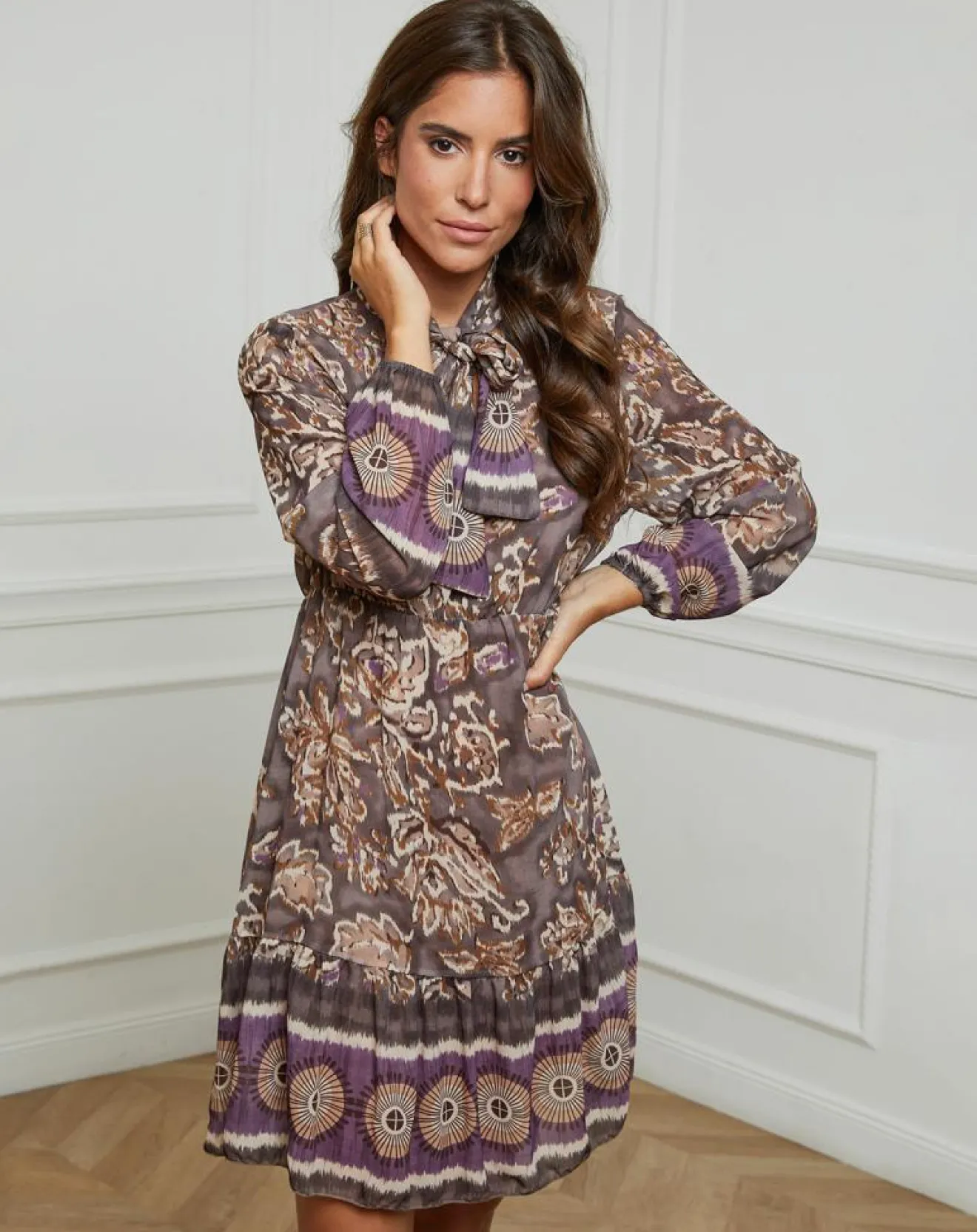 Robe mi-longue Imprimée avec un noeud au niveau du col