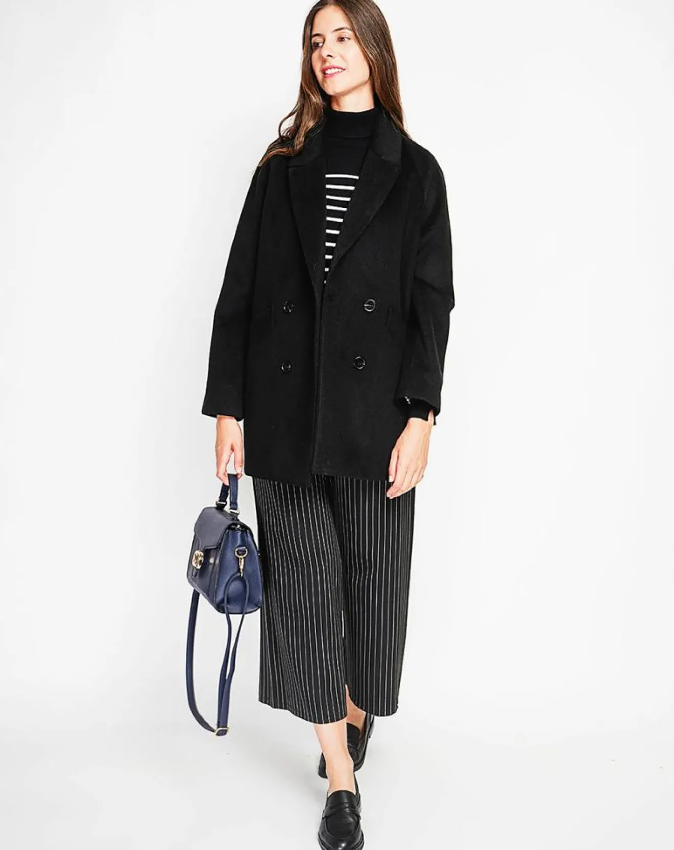 Manteau coupe oversize double boutonnage poches à manches longues doublé imprimier