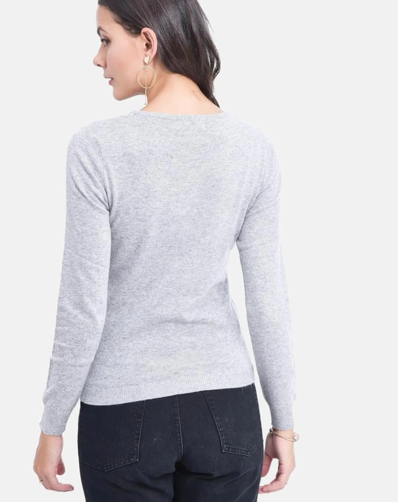 Pull col rond classique tricotage en 2 fils à manches longues