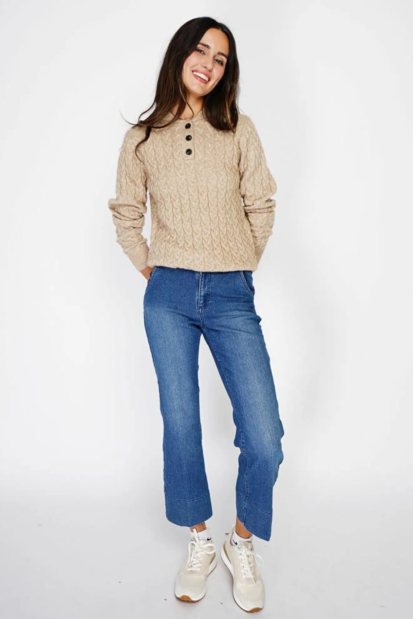 Femme C&Jo Pull en Cachemire mélangé col boutonné désert