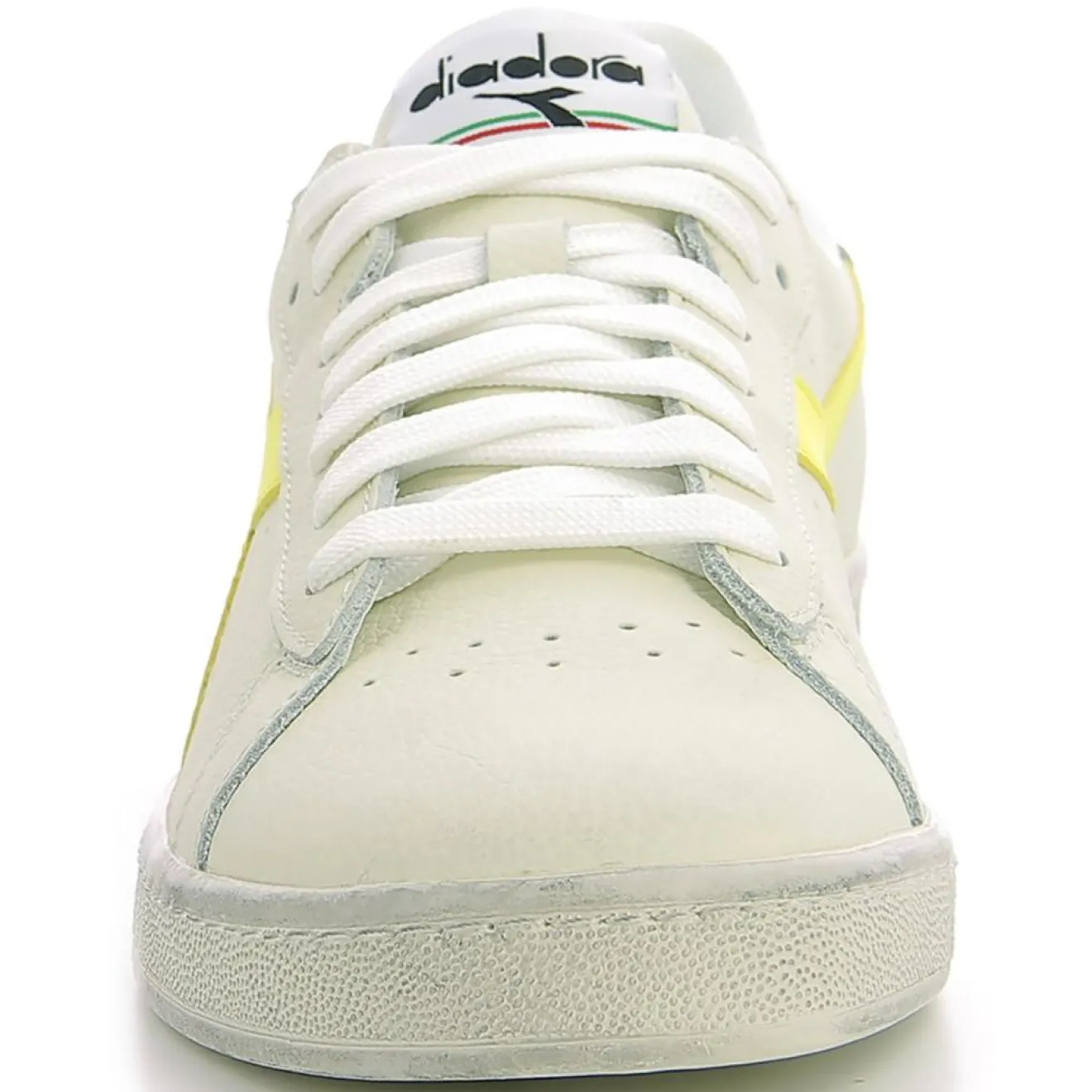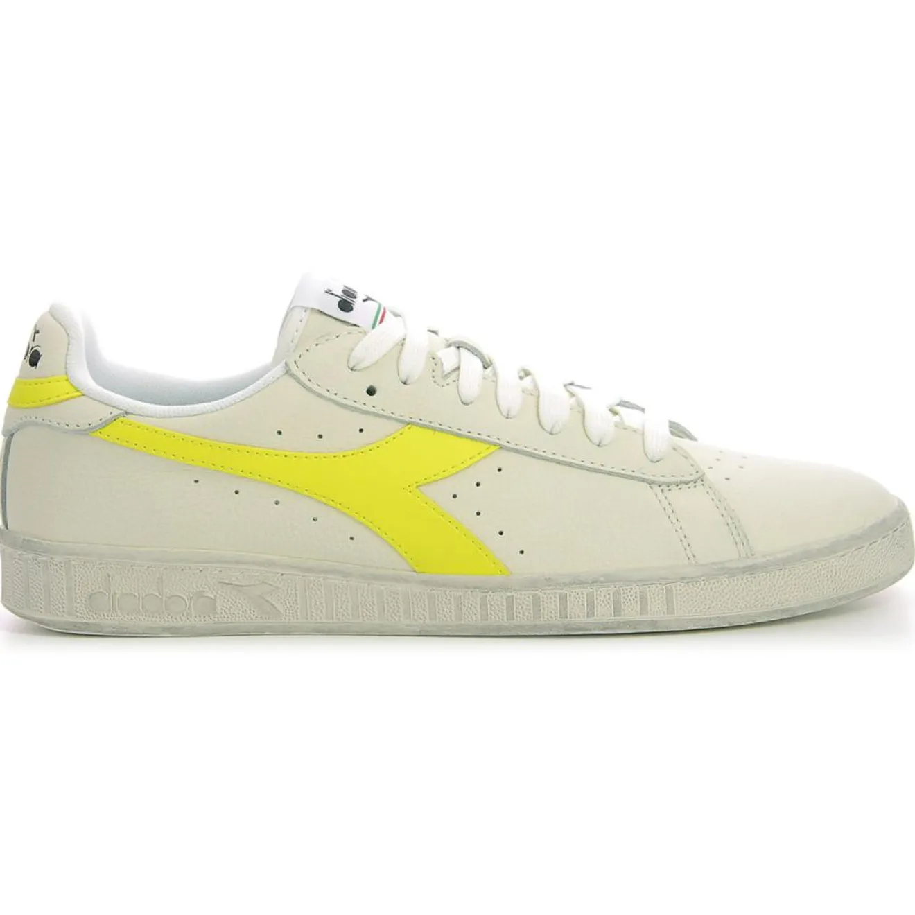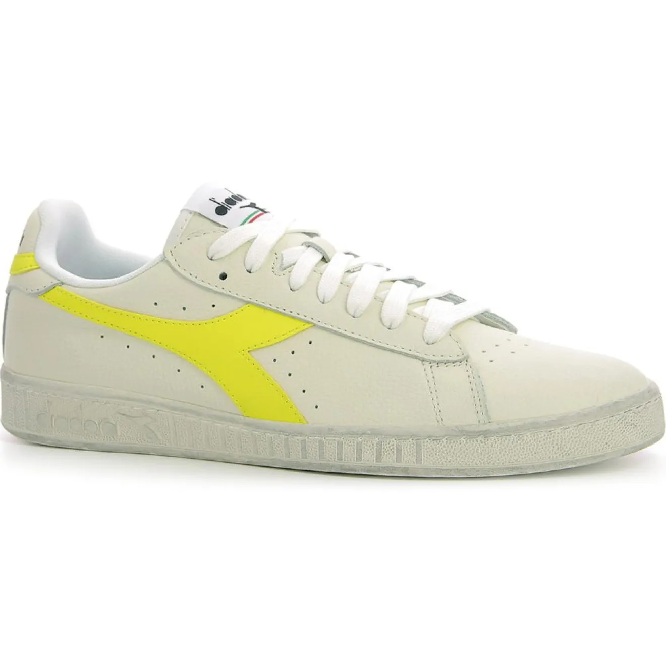 La Game est certainement l’une des baskets les plus populaires parmi les rétro-tennis. La Game L Low Fluo Waxed est fabriquée en cuir pleine fleur foulonné : ce type de traitement donne au cuir un effet vieilli, qui contraste avec les couleurs fluorescentes.
