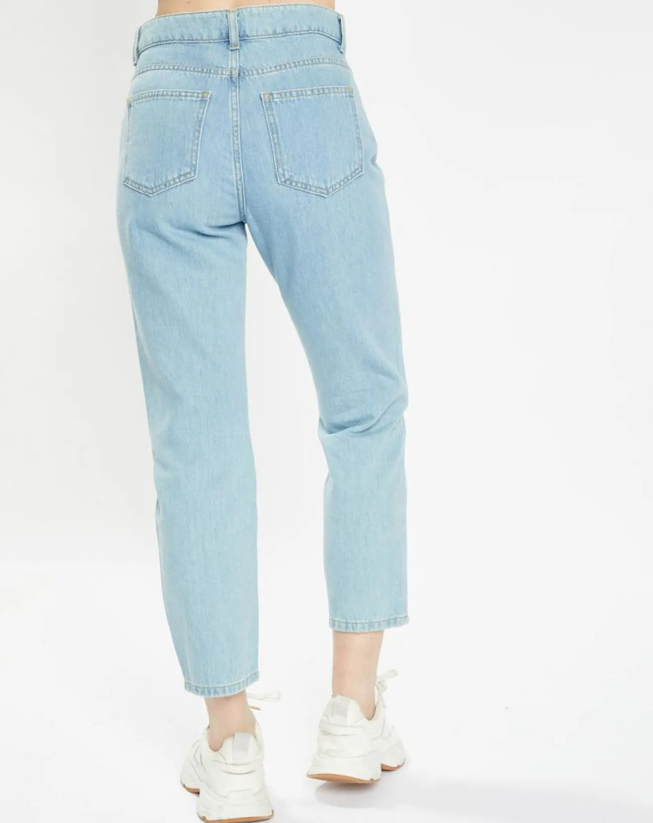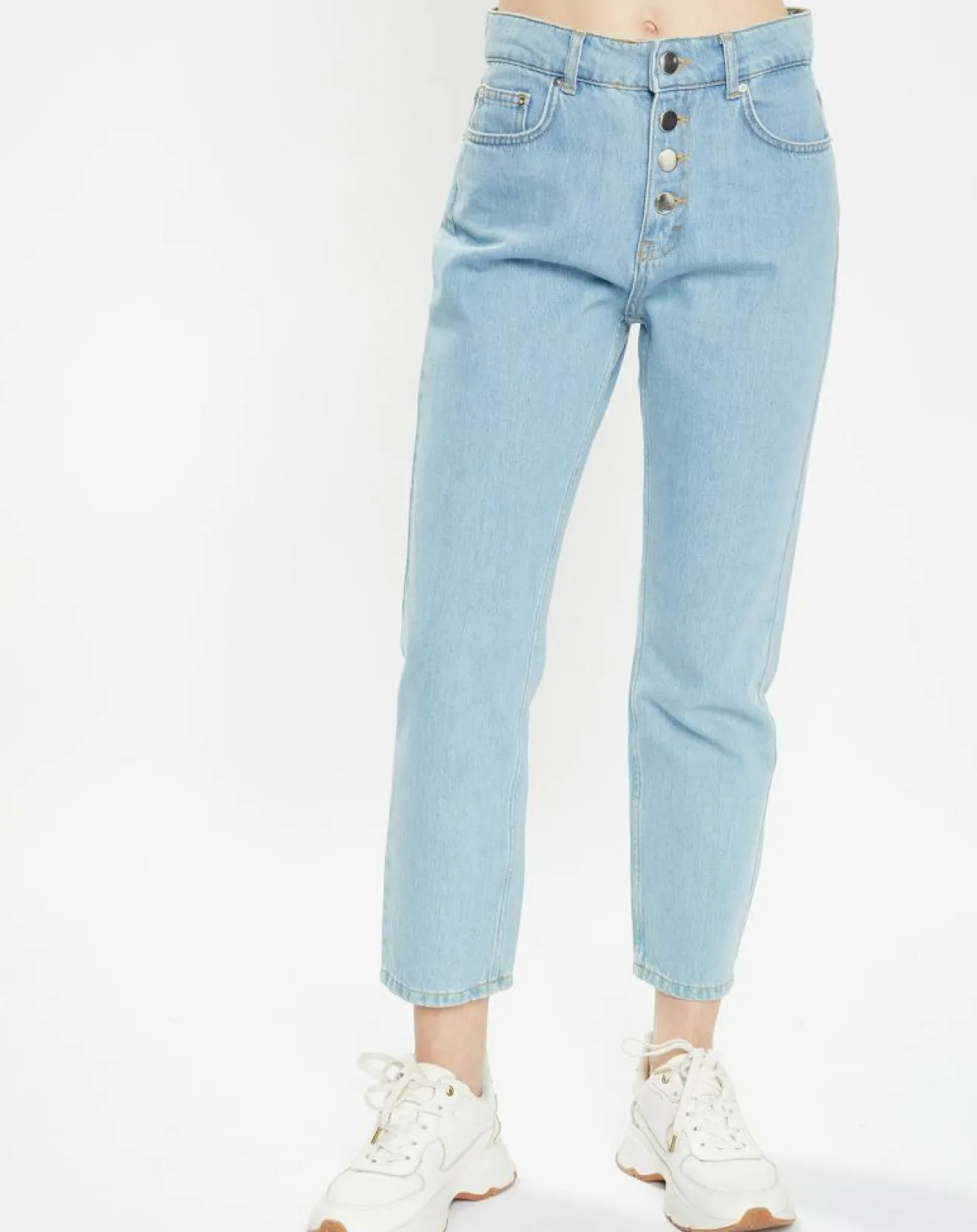 Ce jean droit Galeries Lafayette en coton biologique délavé est muni de 3 poches sur l’avant, de 2 poches sur l’arrière, d’une fermeture boutonnée, ainsi que d’une taille haute à passants.
