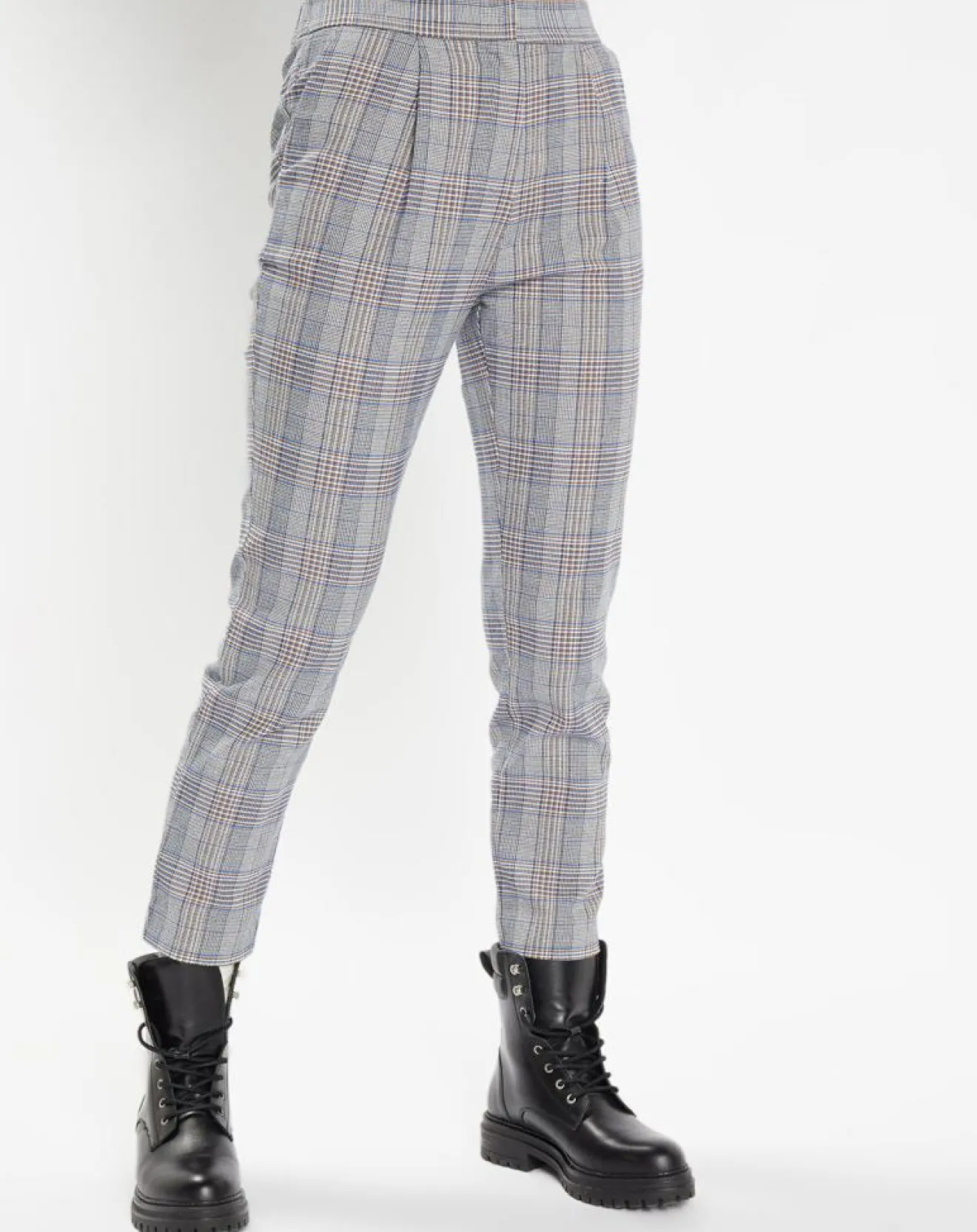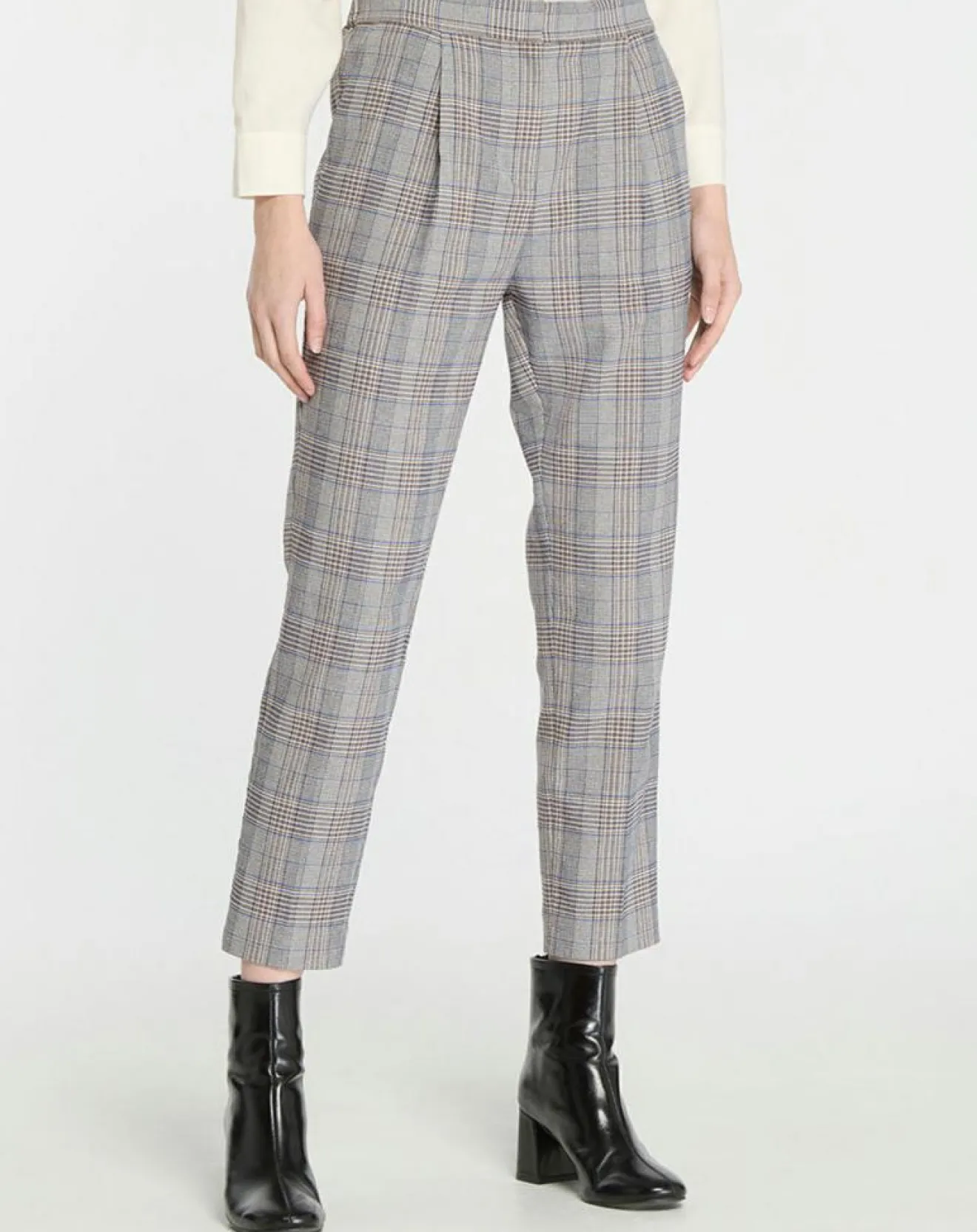 Ce pantalon ajusté court Galeries Lafayette présente un imprimé Prince De Galles, des passants pour la ceinture, une fermeture zippée rehaussée d’agrafes ainsi que des poches.