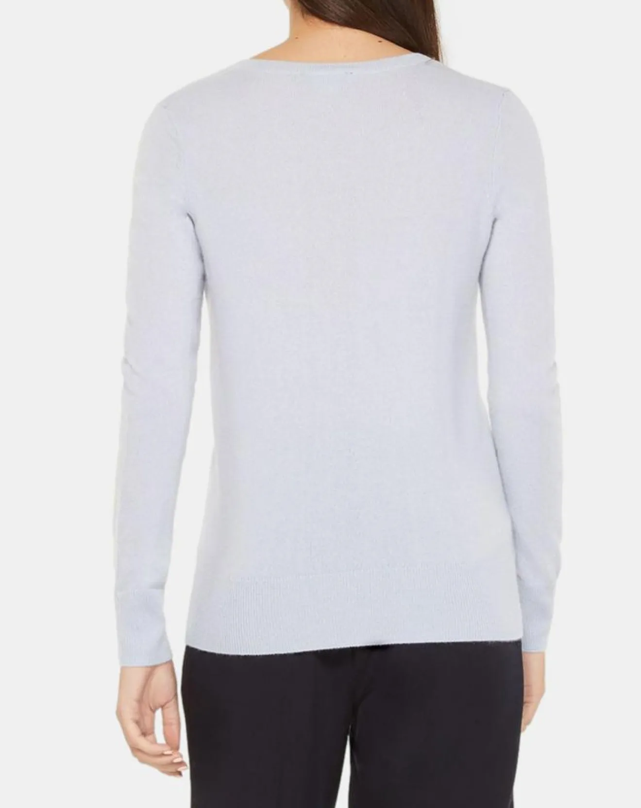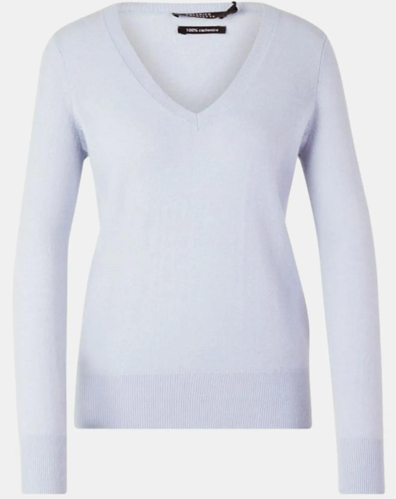 Ce pull droit Galeries Lafayette en cachemire est muni d’un col V et de finitions côtelées.