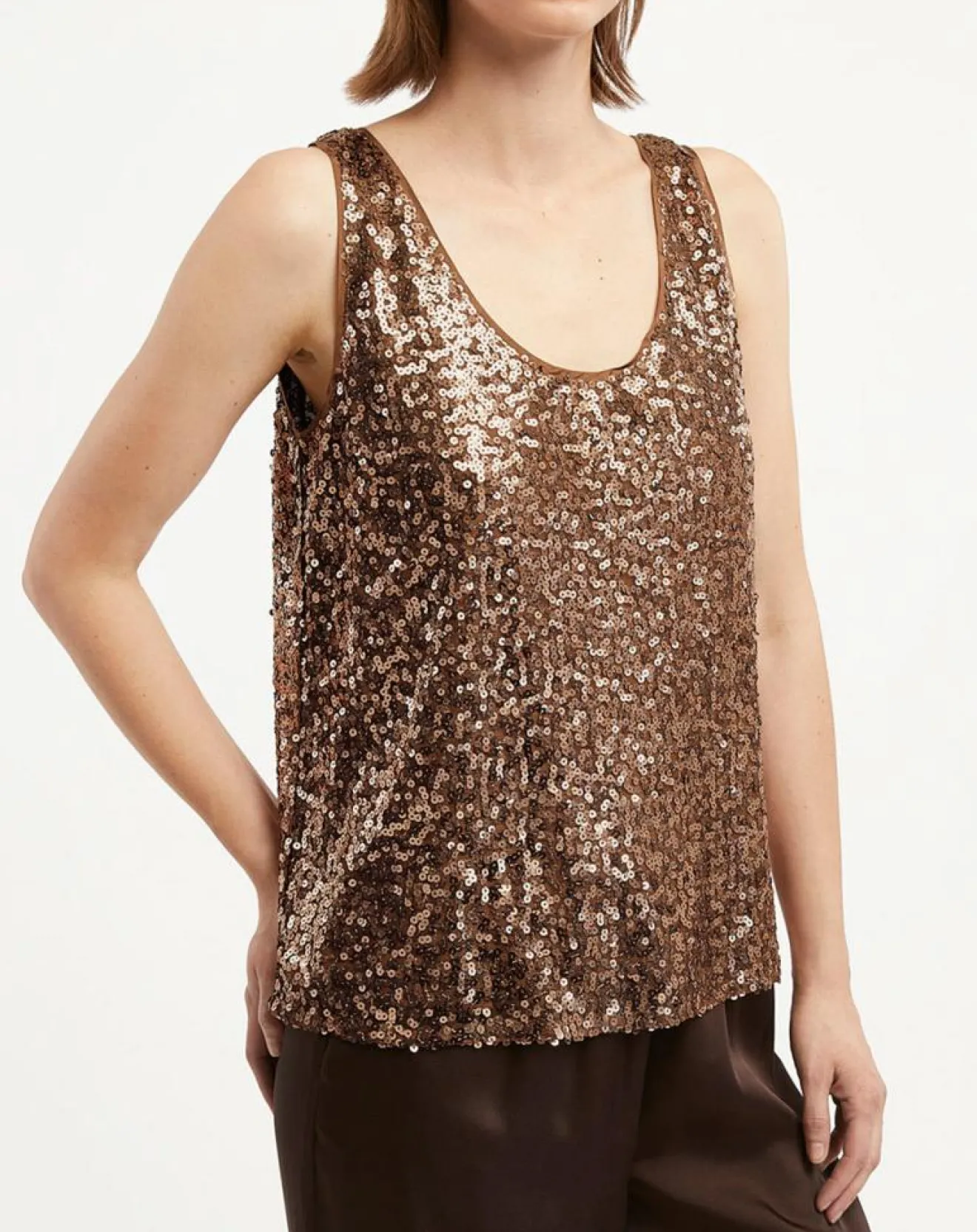 Ce débardeur droit Galeries Lafayette séduit par ses sequins, ses bretelles larges ainsi que son encolure arrondie.
