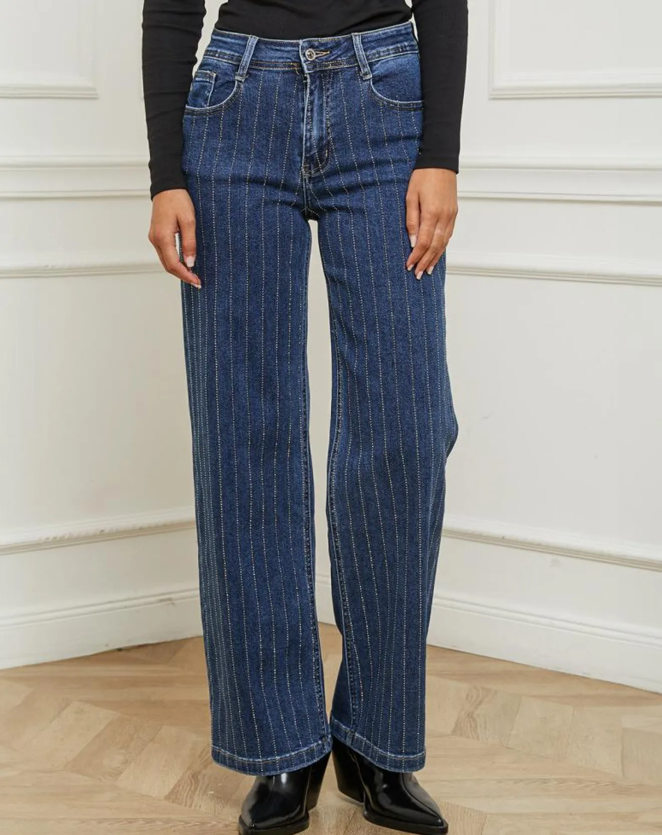 Pantalon en jeans droit avec strass