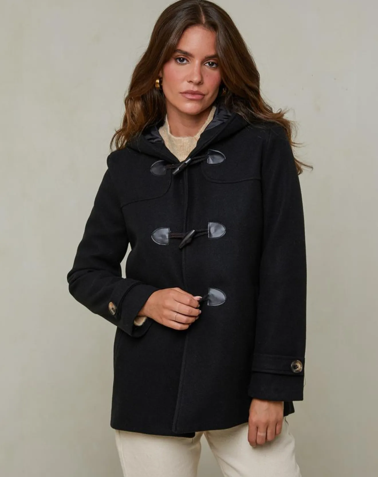 Manteau court à capuche, fermeture à tache avec deux poches sur les côtés