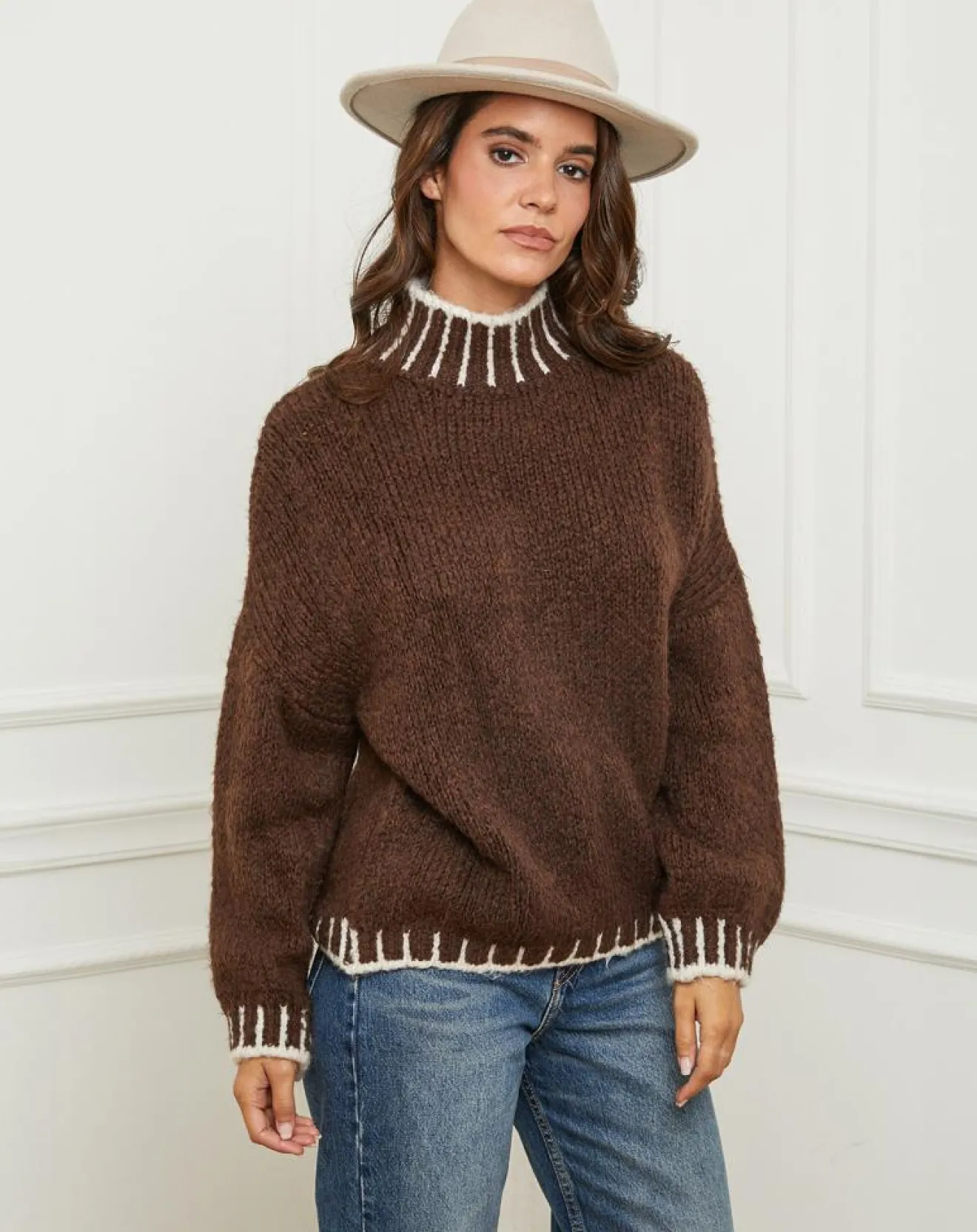 Pull en maille, col haut et manches longues