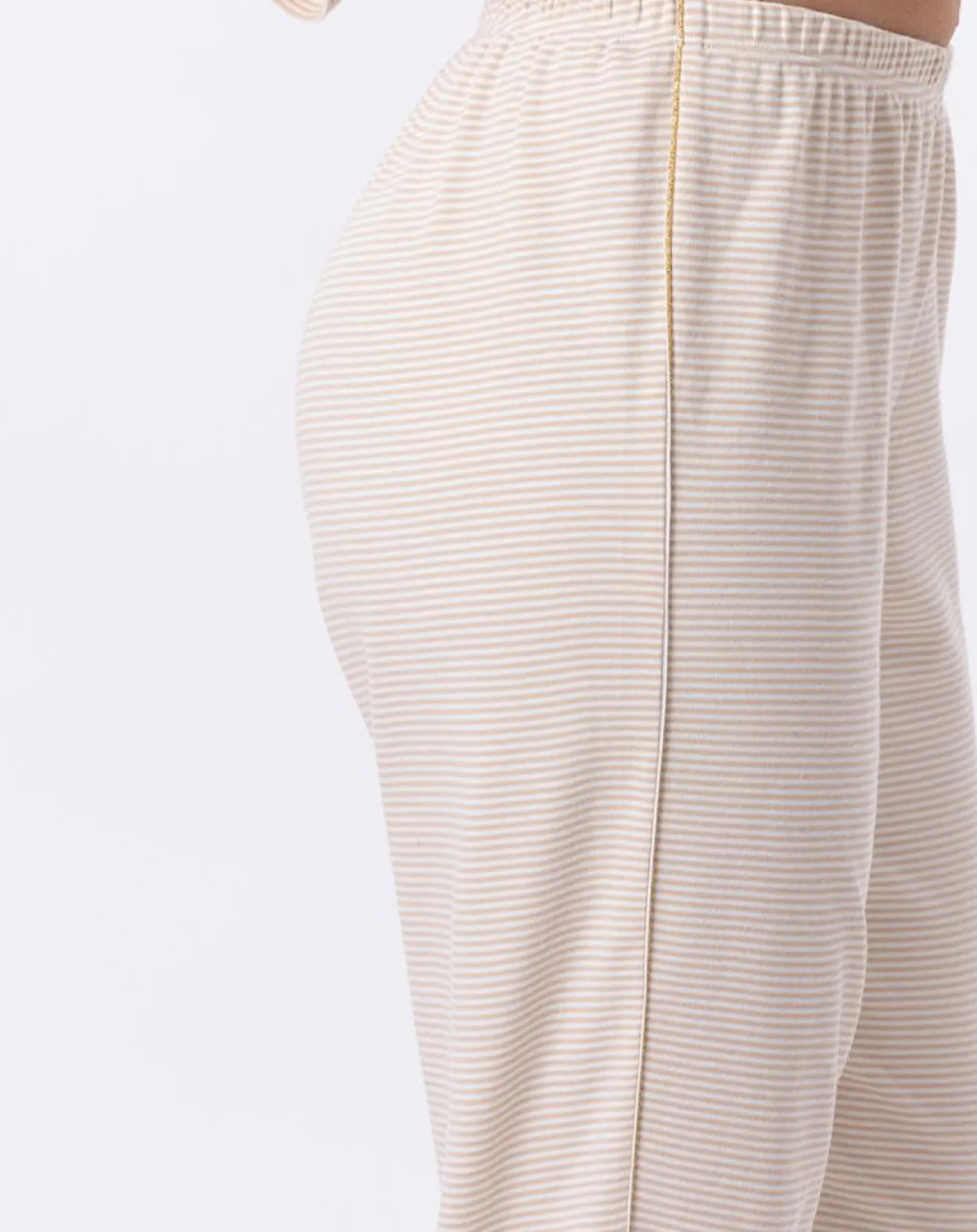 Pour les plus frileuses, associez le pyjama GARANCE 802 à une robe de chambre, un peignoir ou une veste Essentiel : vous aurez chaud tout en étant élégante au saut du lit.