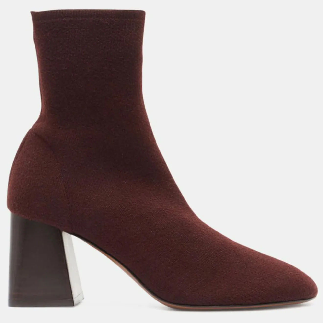 Ces bottines chaussettes à enfiler Neous réalisées en maille, proposent un bout arrondi ainsi qu’un talon trapèze bois.