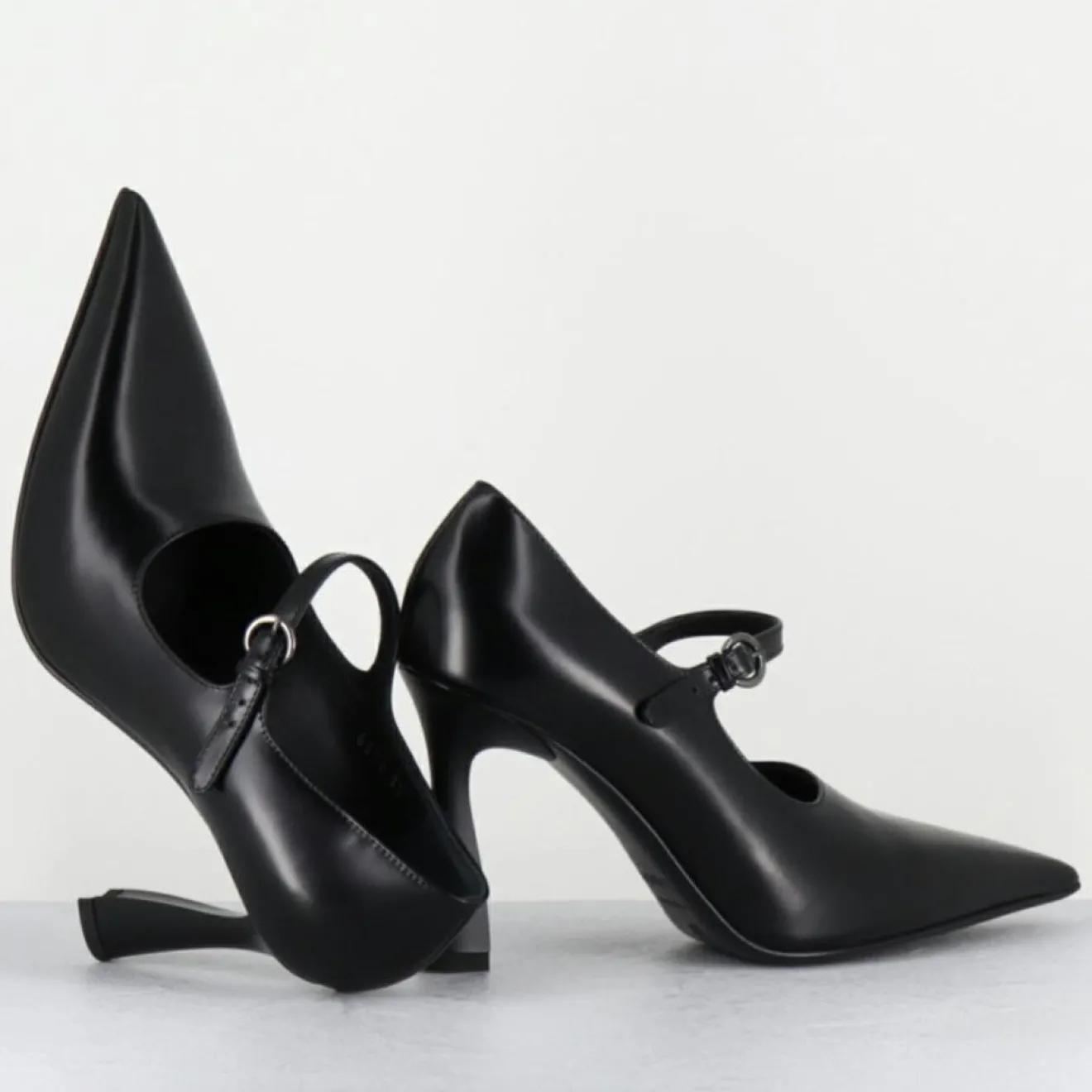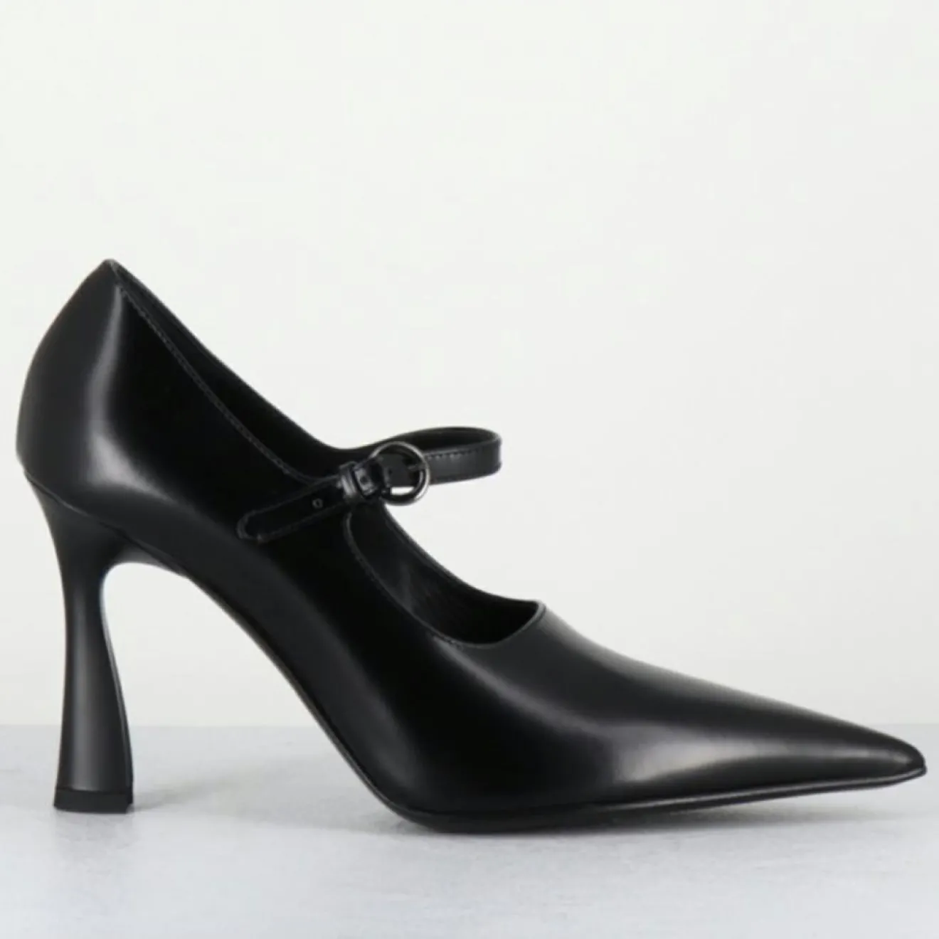 Escarpins bout pointu en cuir légèrement glacé noir