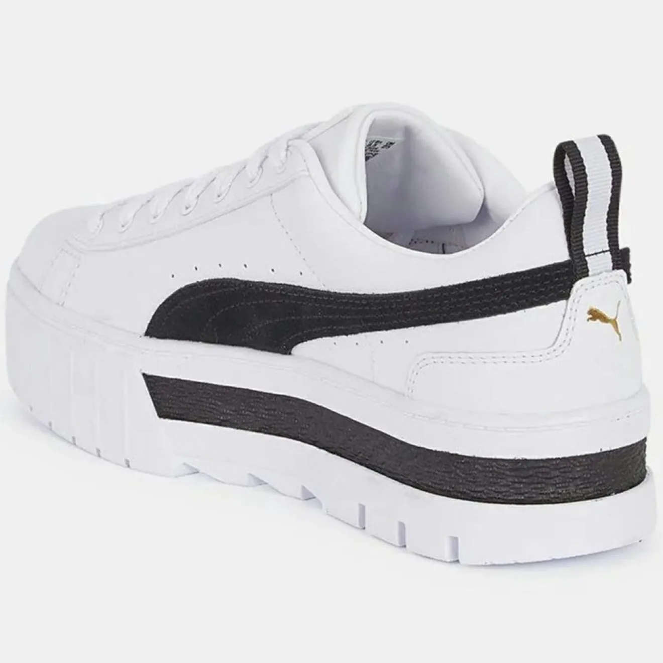 Ces baskets basses petit plateau Puma conçues en cuir de vachette lisse et suédé, disposent d’un bout rond, d’un laçage 7 oeillets, d’empiècements contrastants et de perforations sur les côtés, d’une signature embossée latérale, d’une languette siglée et du logo ainsi que d’un tirant d’enfilage sur le col arrière.