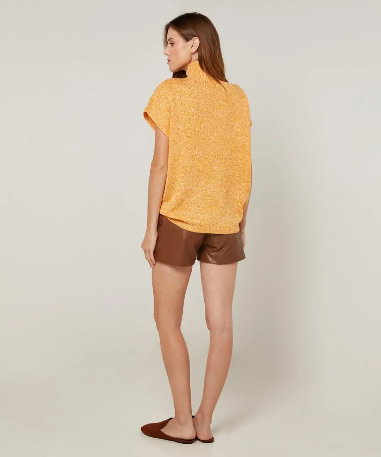 Femme Rodier Pull Bachira col roulé sans manches jaune