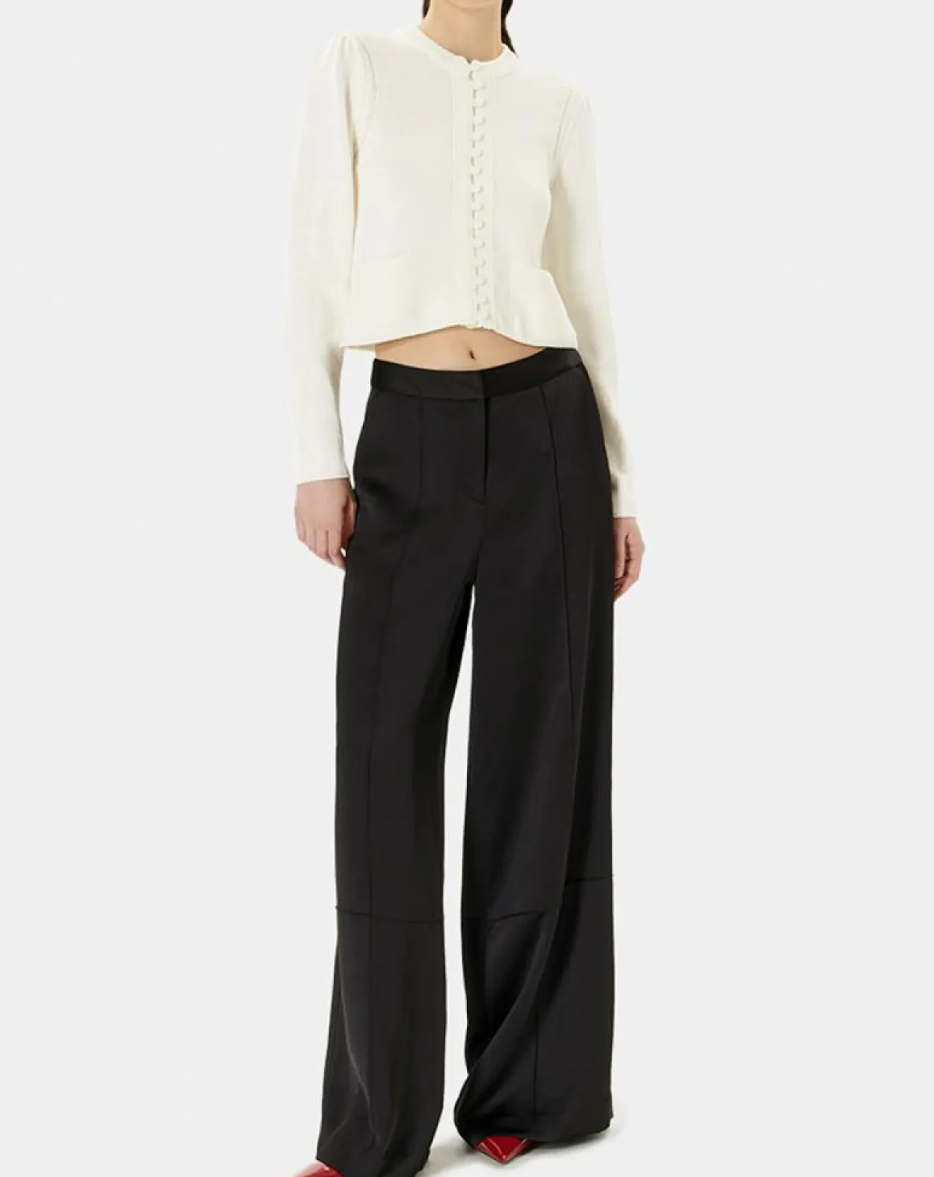 Idéal les jours de bureau ou le soir pour les nuits encore fraîches, ce gilet en maille détaillé possède un col et une patte de boutonnage minitieusement travaillés de détails côtelés