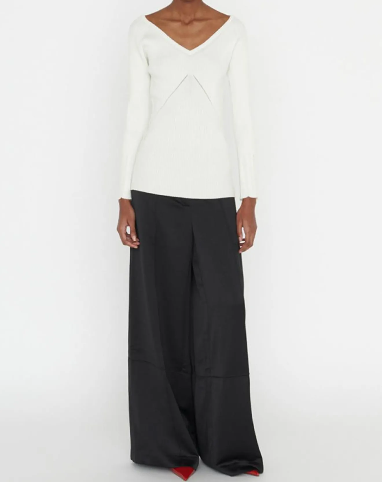 Apprécié pour sa finesse, le pull NELIA est sublimé à l’avant par un décolleté en V et un dos échancré