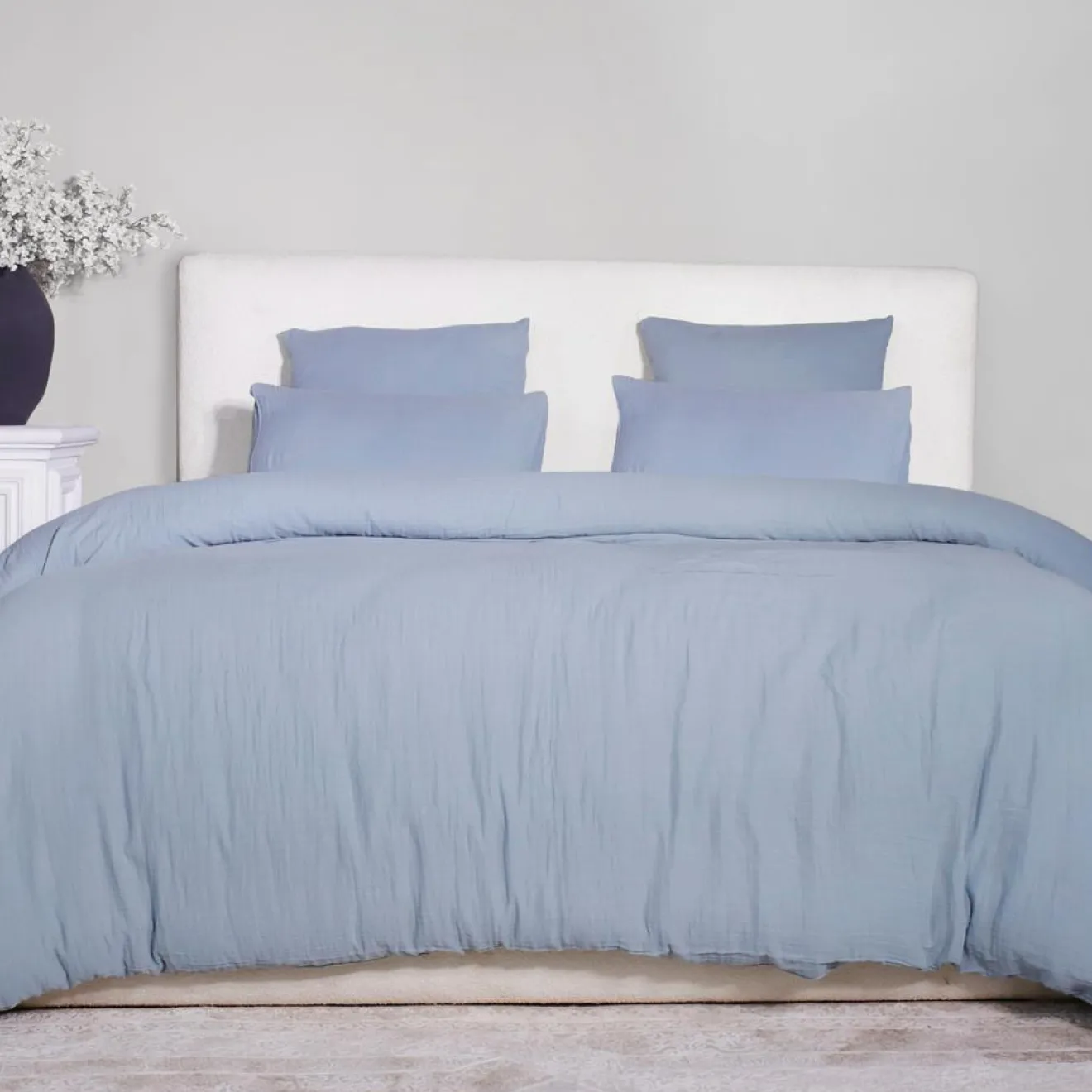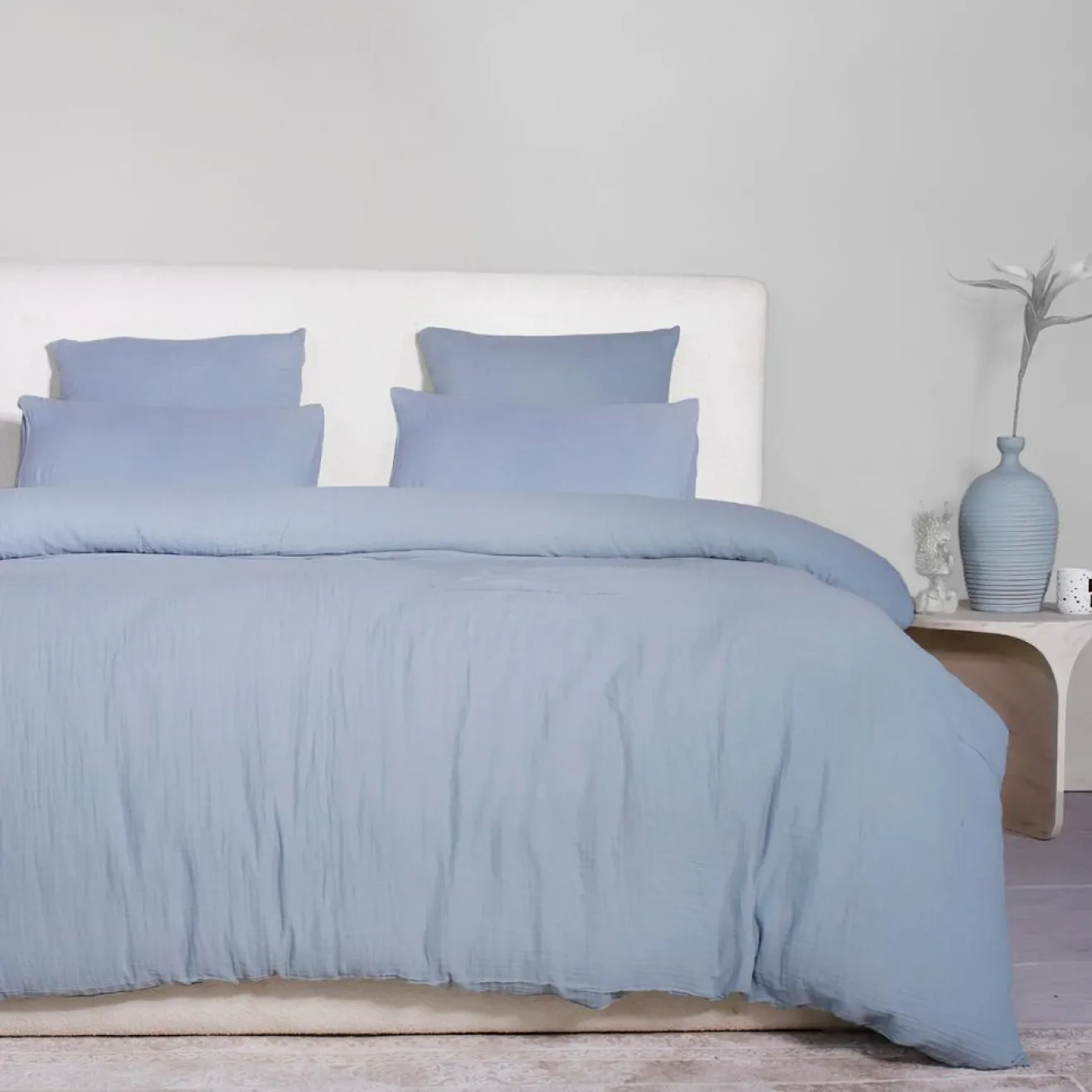 Parure de Couette 3 pcs 100% Gaze de Coton Lavé bleu givrée