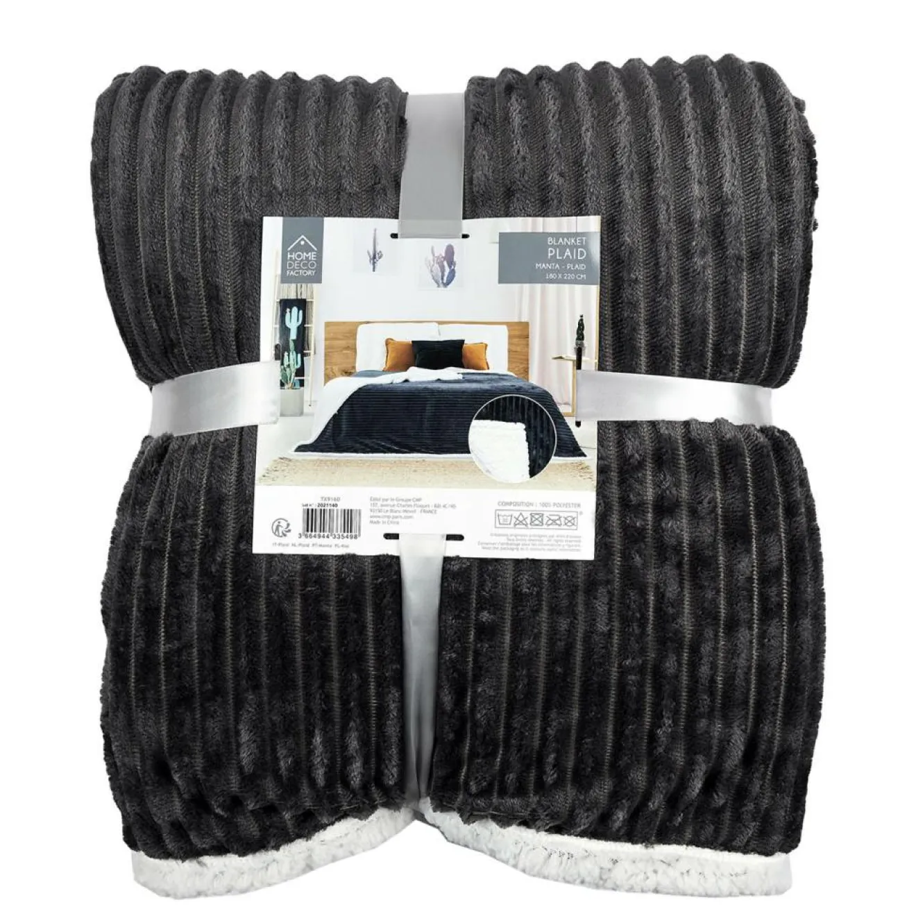 Home Deco Factory Plaid flanelle sherpa XXL gris foncé – 140×200 cm