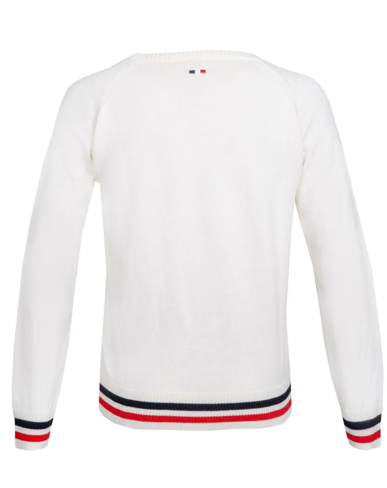 Le pull PIERRE bleu/blanc/rouge de chez Duvillard offre un confort incroyable grâce à sa fabrication sans coutures
