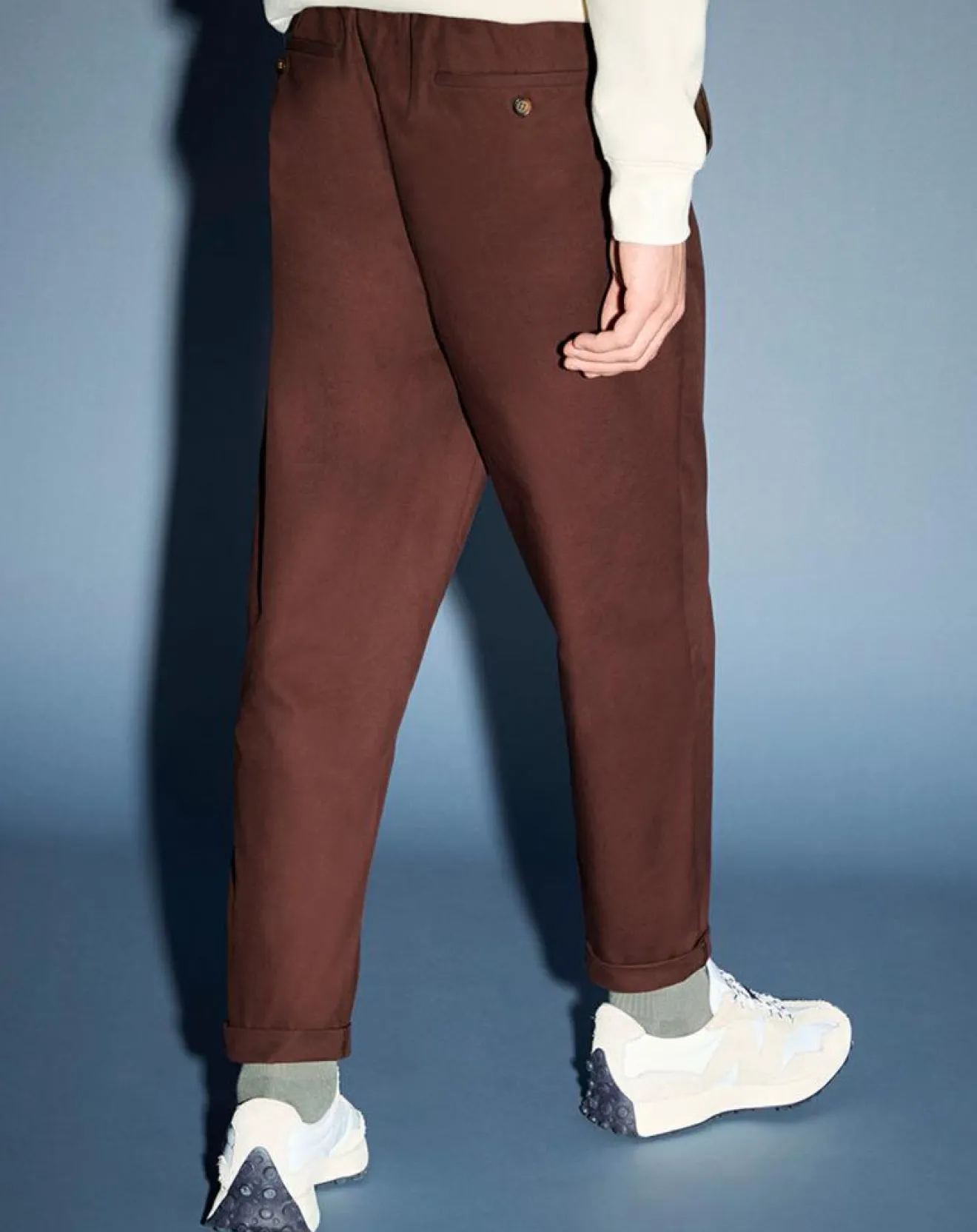 Ce pantalon chino jogging Galeries Lafayette en coton, est muni d’une taille élastiquée ajustable et de poches.