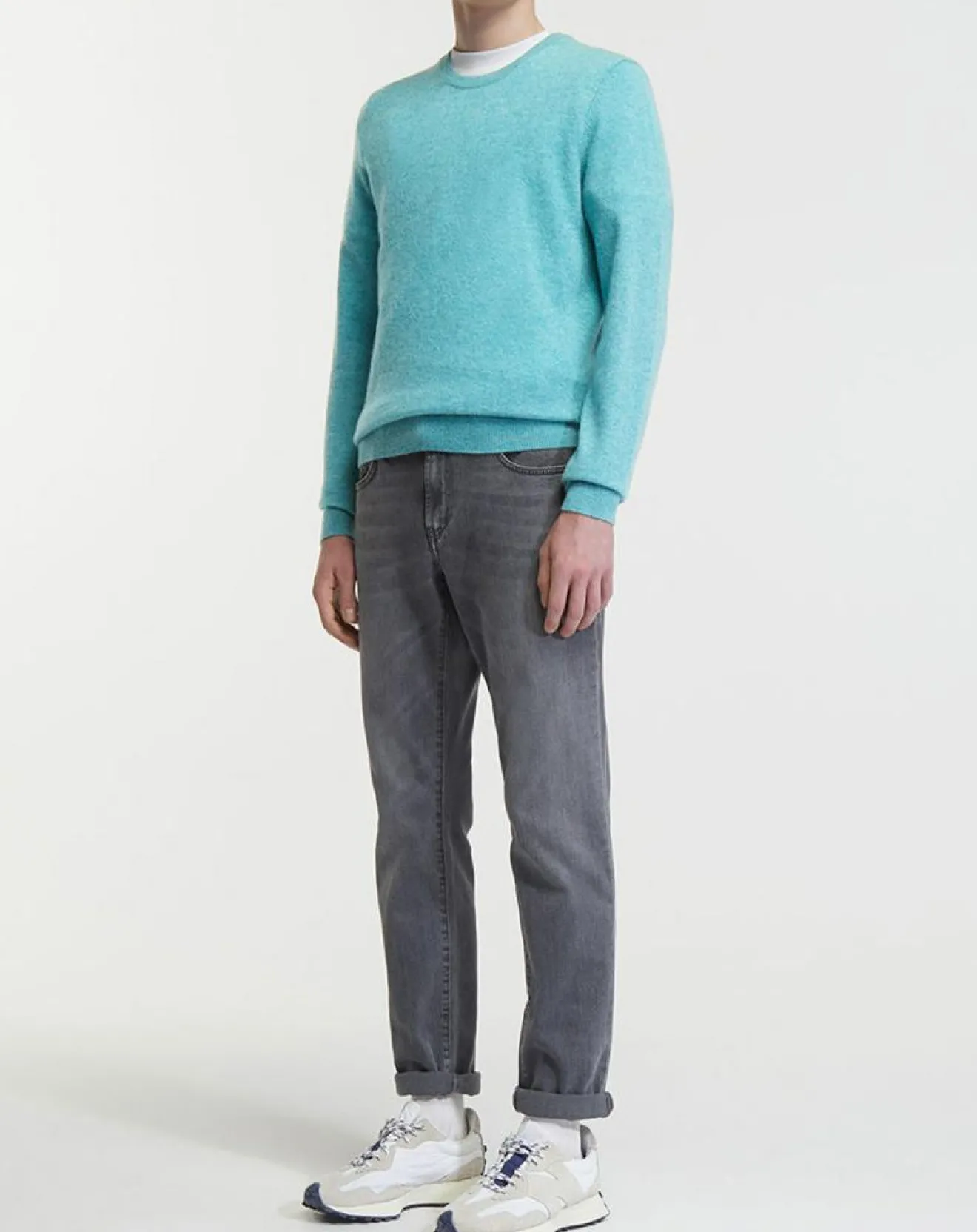 Pull droit en cachemire, muni d’un col rond, de manches longues, puis de finitions côtelées au col, aux poignets et à la base.