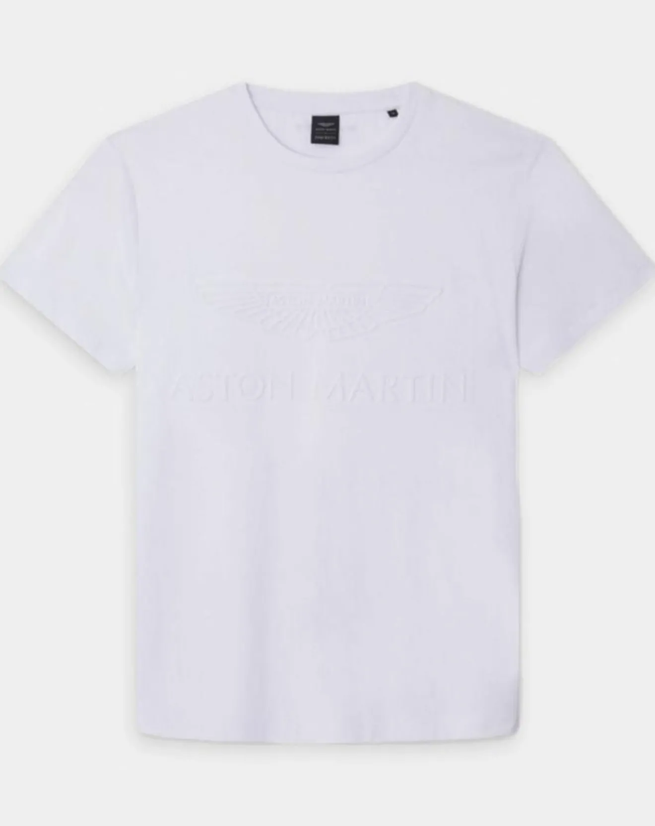Ce t-shirt droit issu de la collaboration Aston Martin Racing x Hackett London en coton est muni d’un col rond côtelé et de la signature embossée devant avec logo