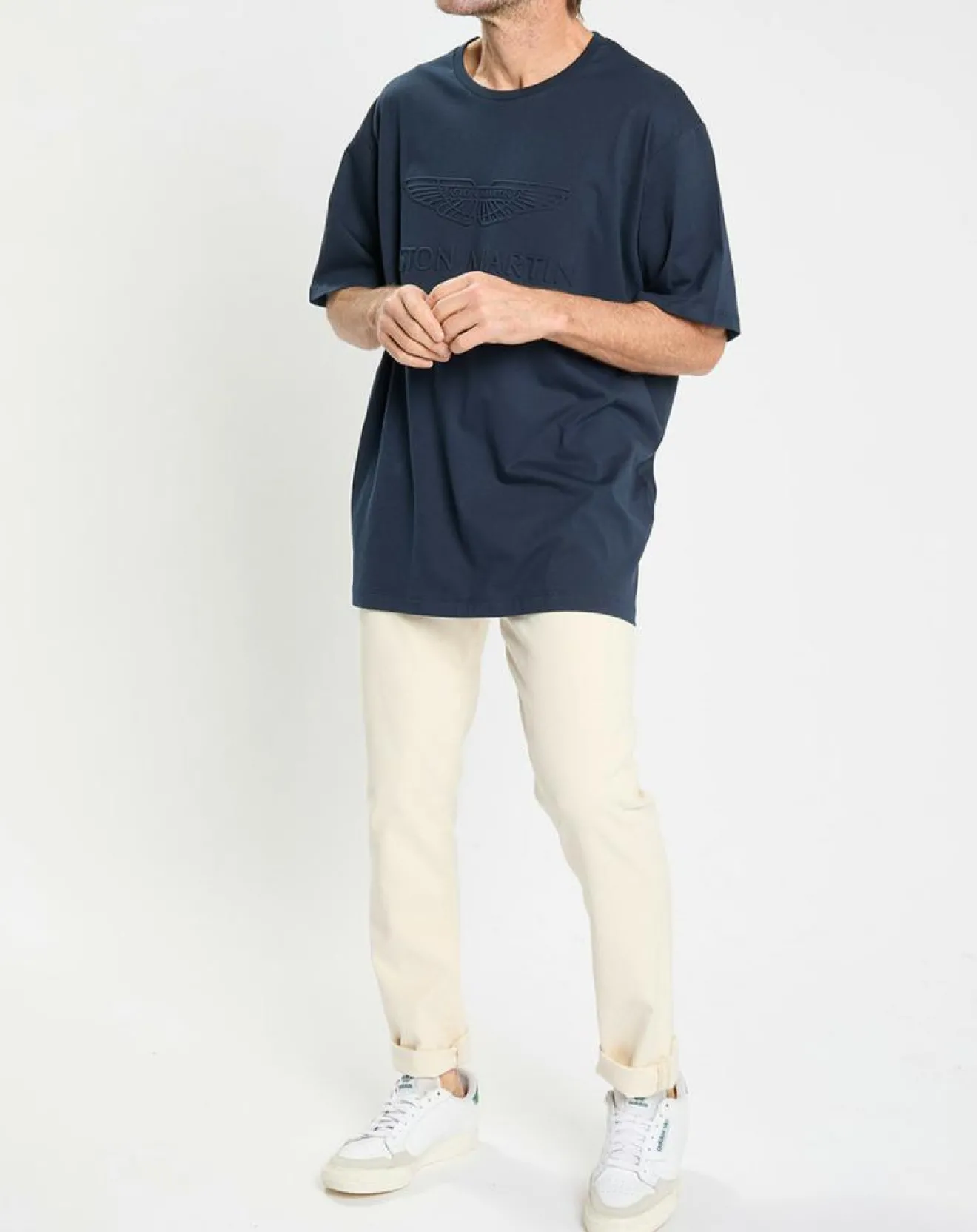 Ce t-shirt droit issu de la collaboration Aston Martin Racing x Hackett London en coton est muni d’un col rond côtelé et de la signature embossée devant avec logo