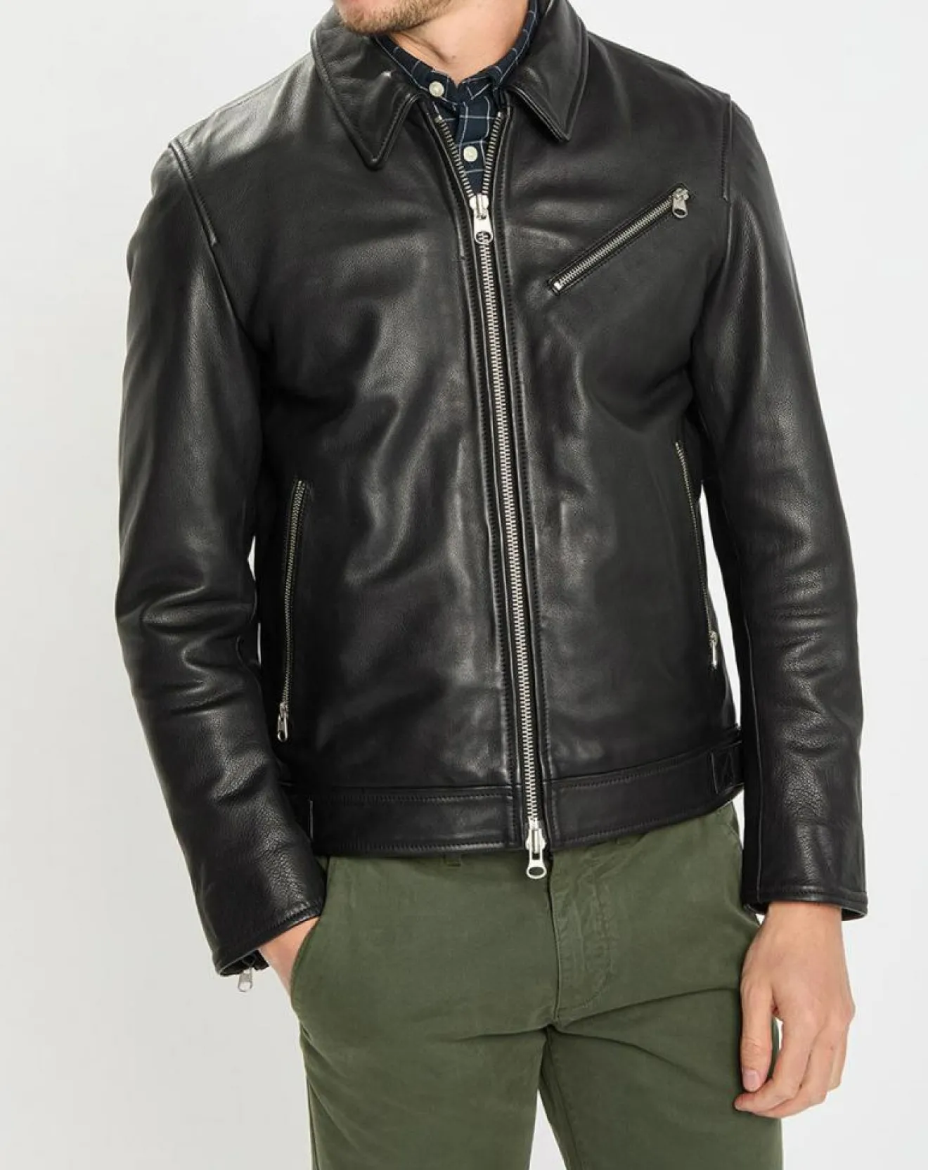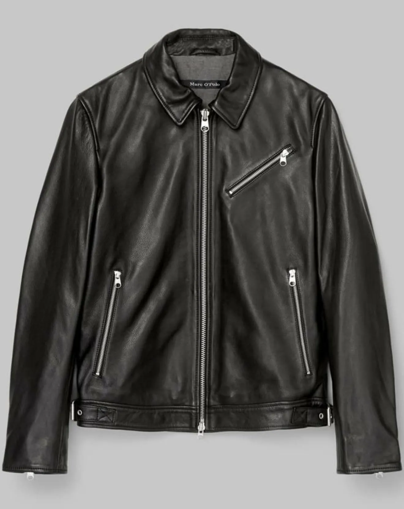 Au design soigné et intemporel : la veste en cuir de vachette de qualité supérieure, de coupe classique.