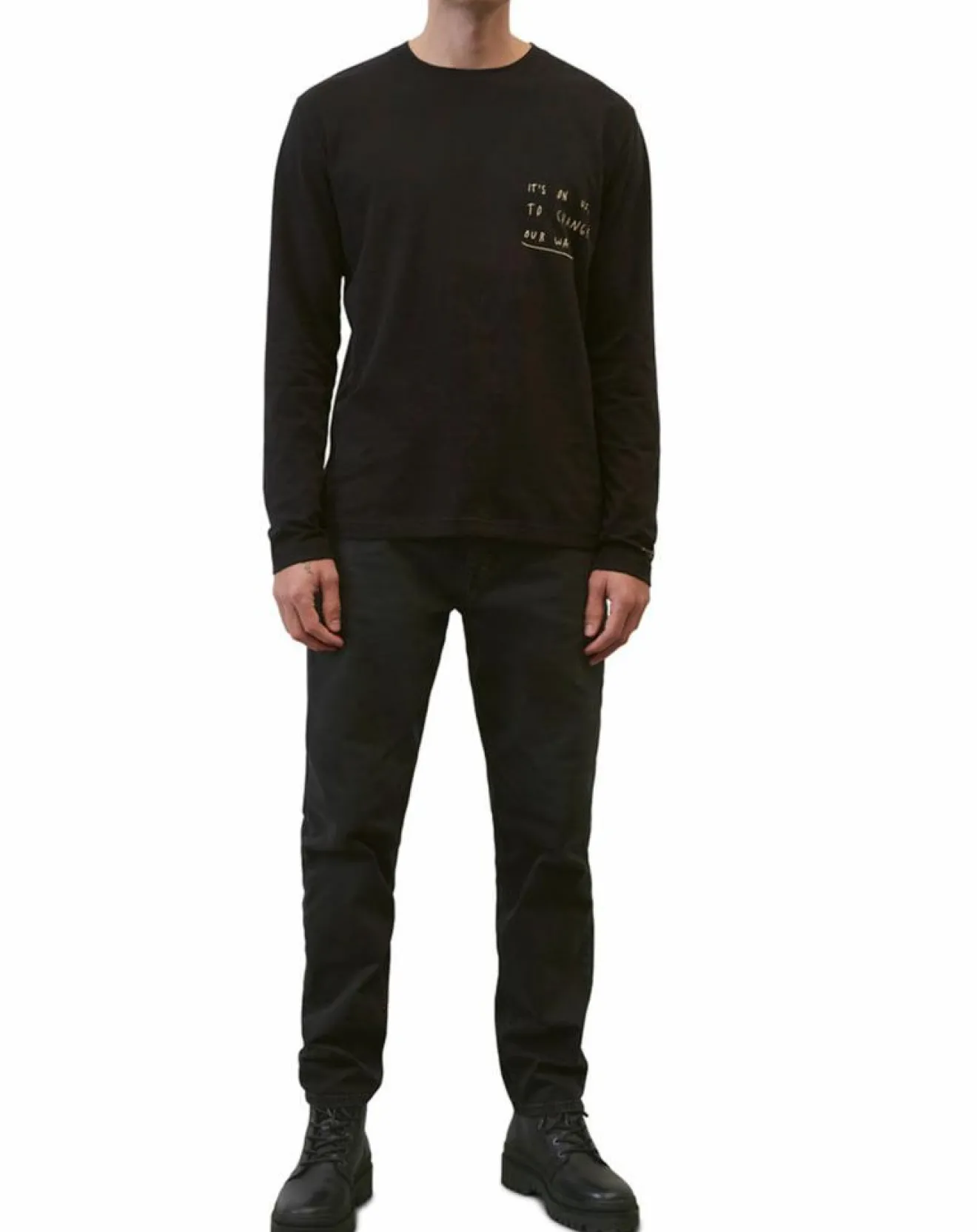 Orné d’une inscription décontractée imprimée sur la poitrine : le t-shirt haut de gamme au toucher peau de pêche, confectionné en doux jersey de pur coton biologique certifié GOTS, à teneur en élasthanne.